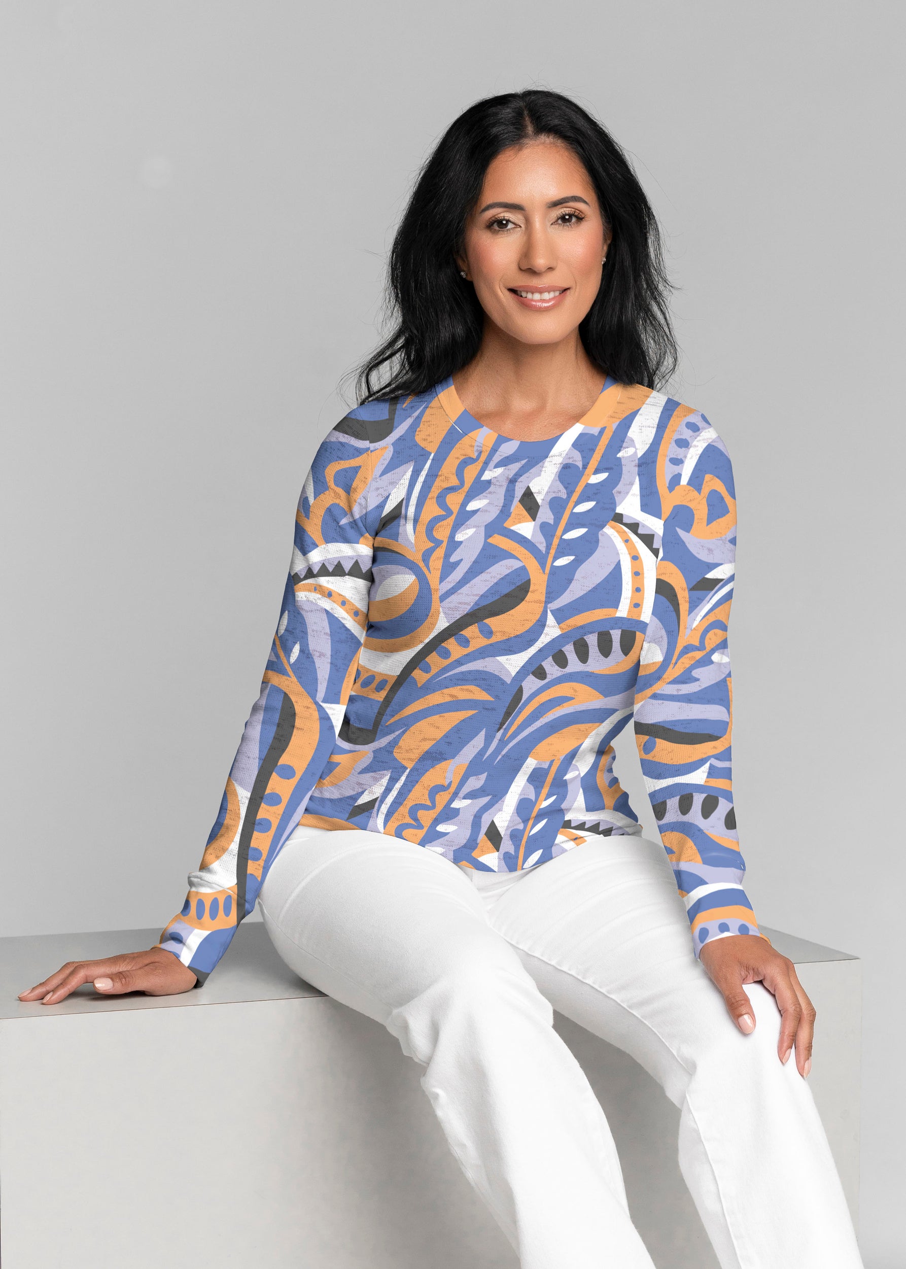 Harbor Paisley Orange (13237) ~ Long Sleeve Rash Guard