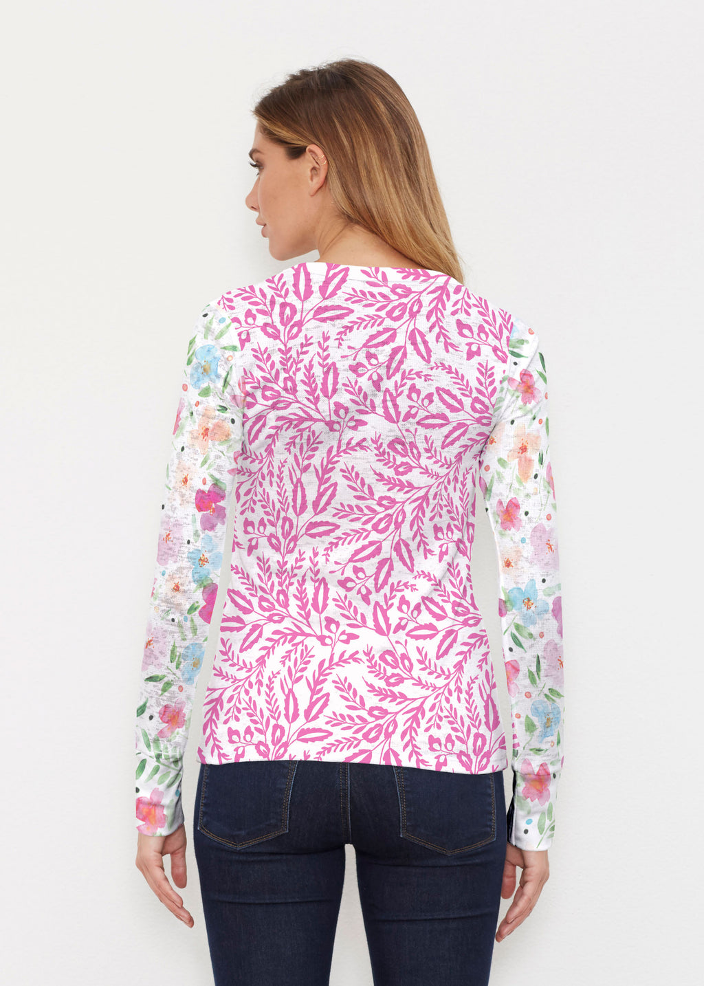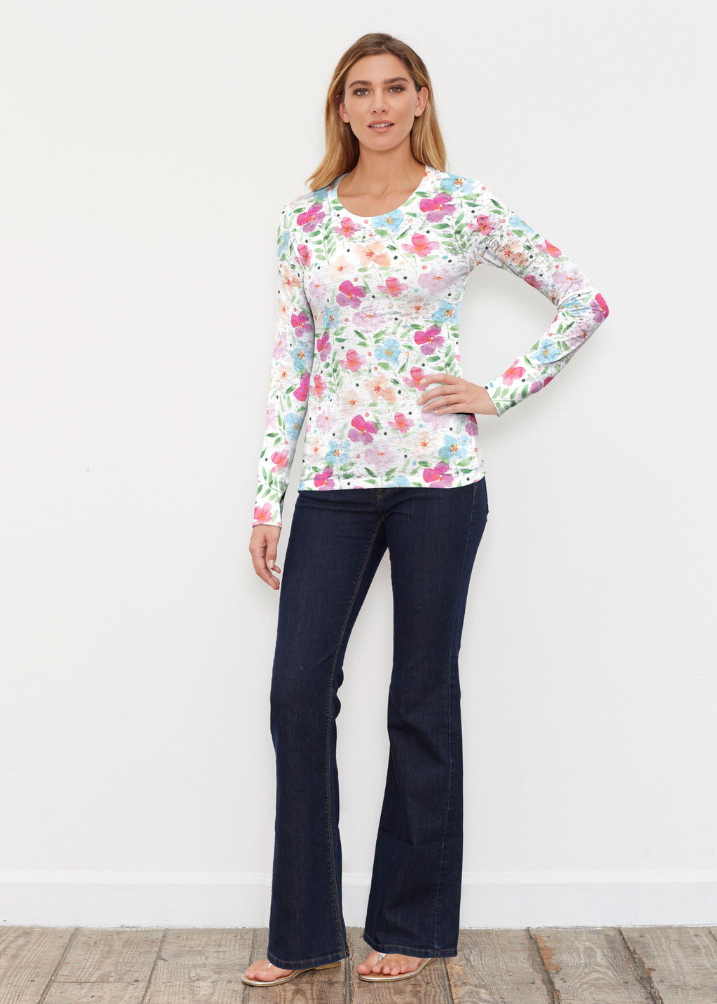 Darling and Dainty field of watercolor florals in an array of peaches, pinks and blues by Susan Werner.