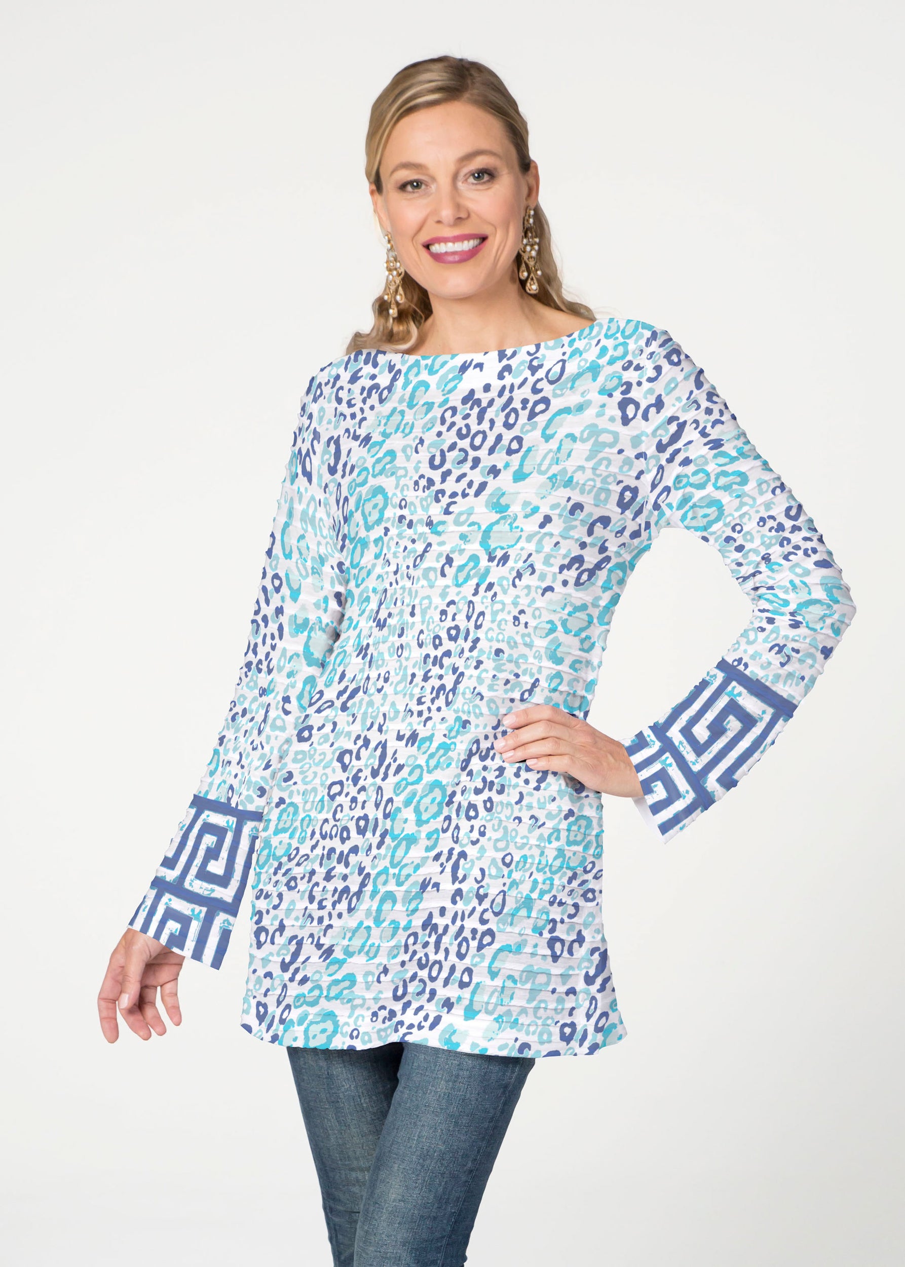 Cat Blue (7755) ~ Buttersoft 3/4 Sleeve Tunic