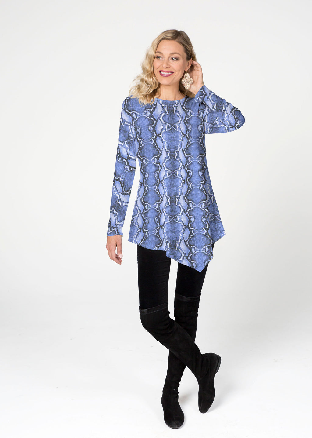 Python Blue (7275) ~ Asymmetrical French Terry Tunic