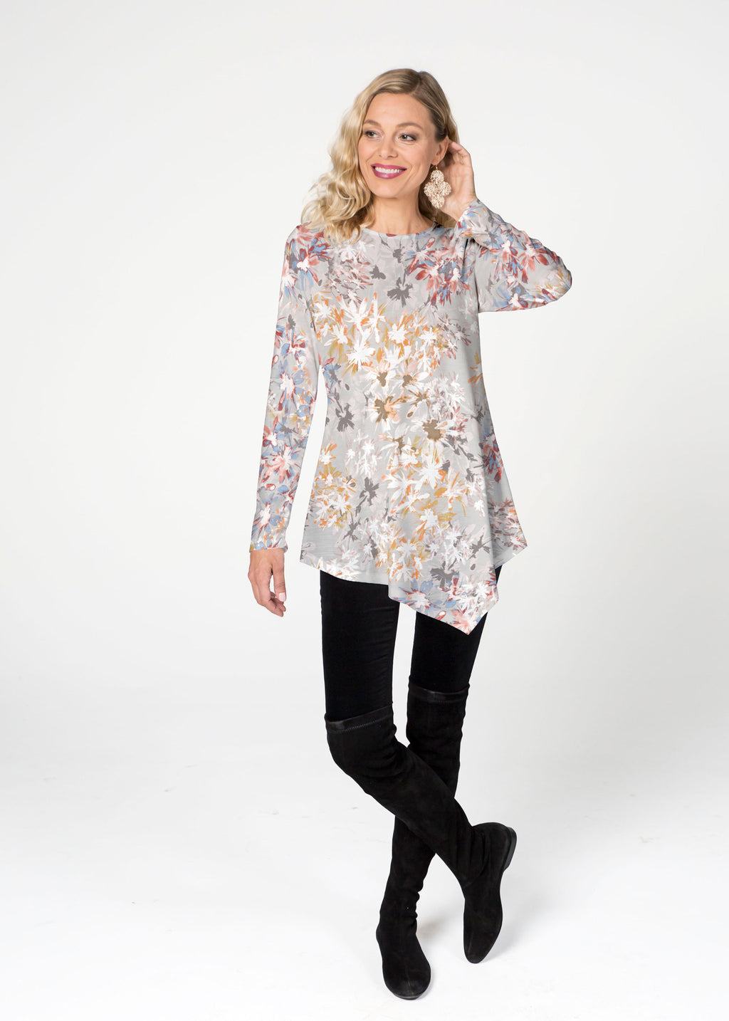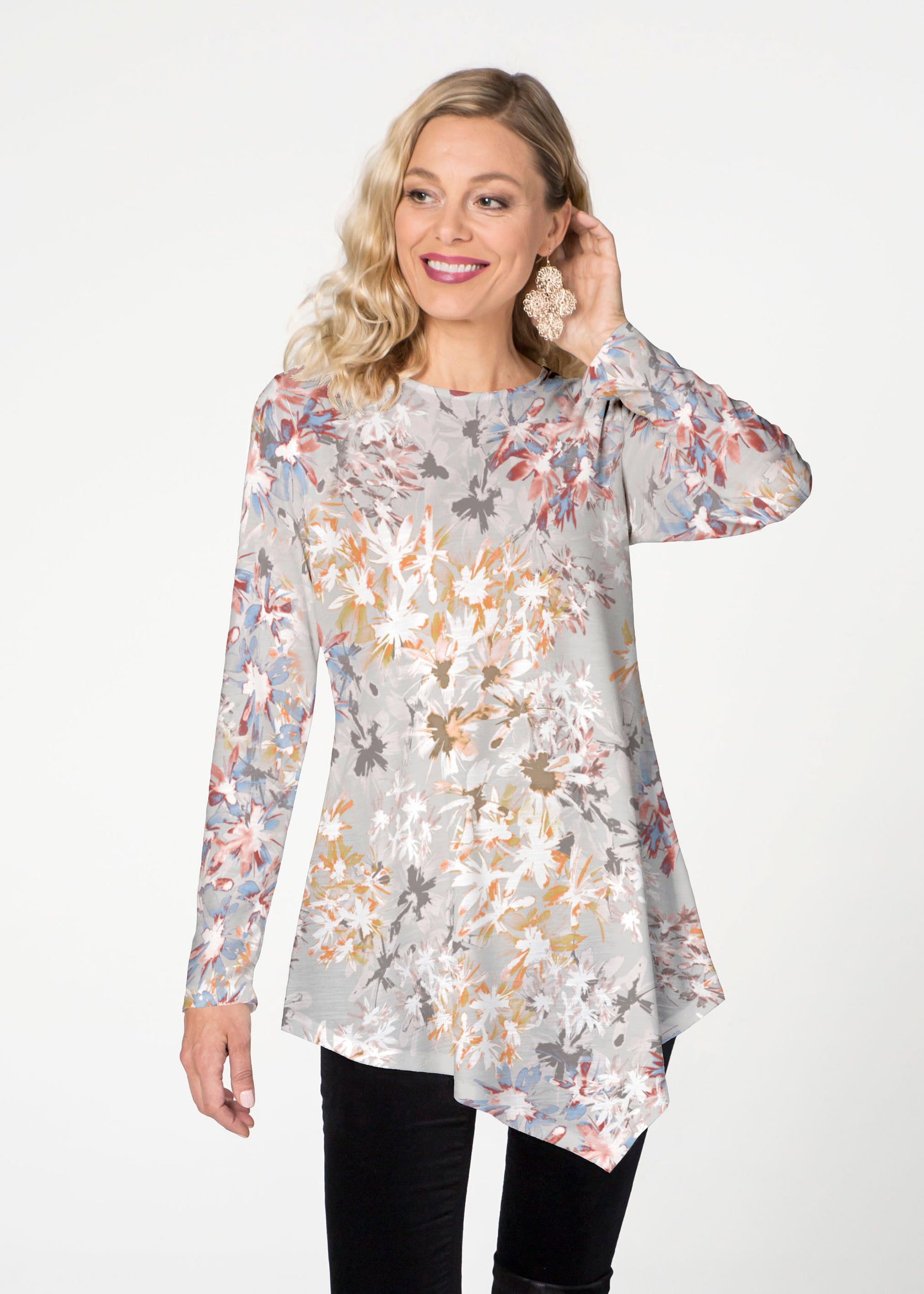 The Asymmetrical French Terry Tunic is soft and lightweight. This Relaxed crew neck features an Asymmetrical hem that falls just below the hip with long sleeves. Your one-of-a-kind garment is created using all-over soft garment sublimation printing. Selected designs are individually printed into your garment.