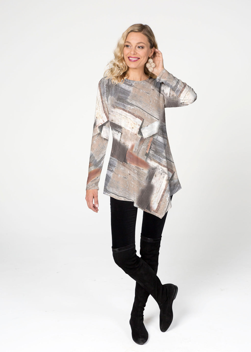 Brush Strokes  (17167) ~ Asymmetrical French Terry Tunic