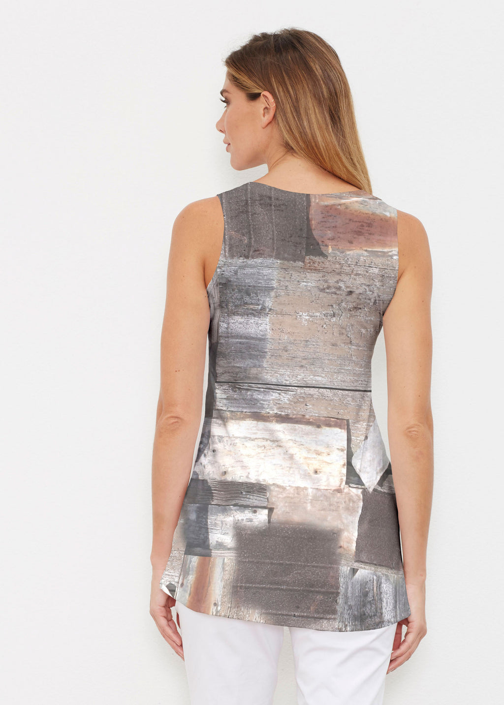 This tank is the perfect combination of an elegant shape with a sporty look. A high-low cascading hemline falls loosely over the hip in our Signature burnout fabric. No sleeves and a shallow scoop neckline give this tank its sporty vibe.