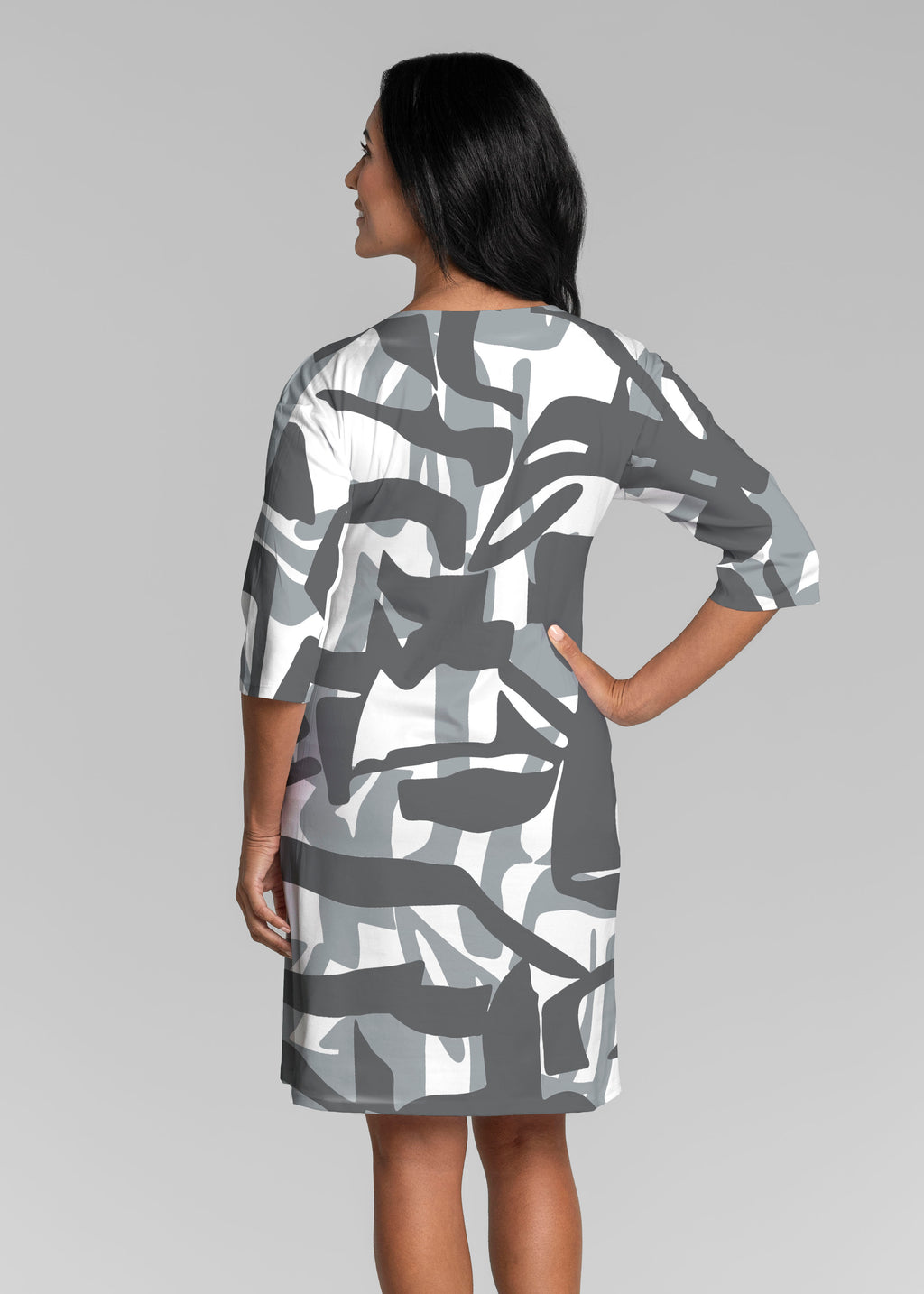 Amaze Grey (26020) ~ Banded 3/4 Sleeve Dress