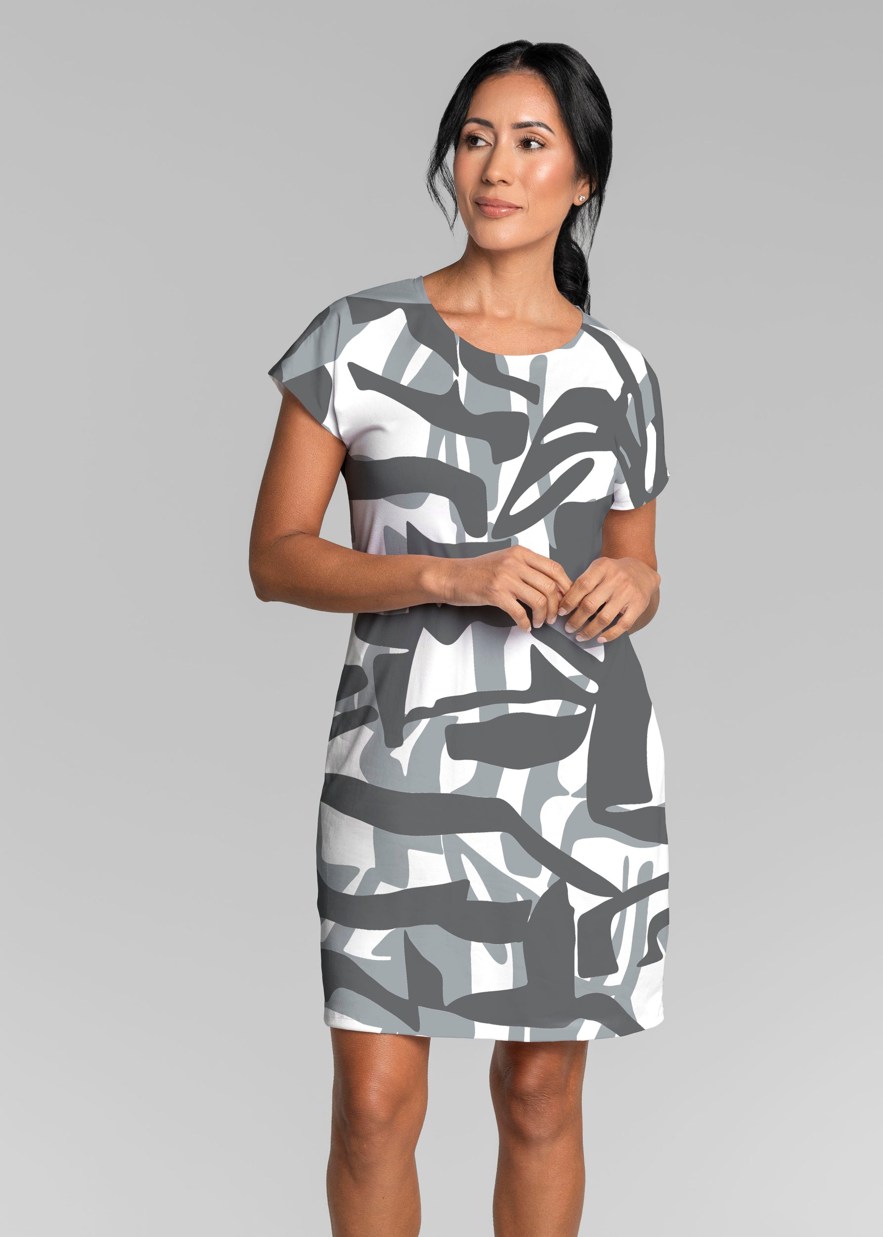 Our Lucy Tee Dress is effortless, versatile and soft to the touch -- perfect for all day style and comfort. A soft crew neckline, seamless sleeve and a relaxed shape made in our vibrant Lucy fabric ends above the knee.