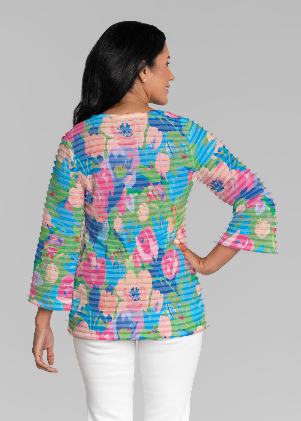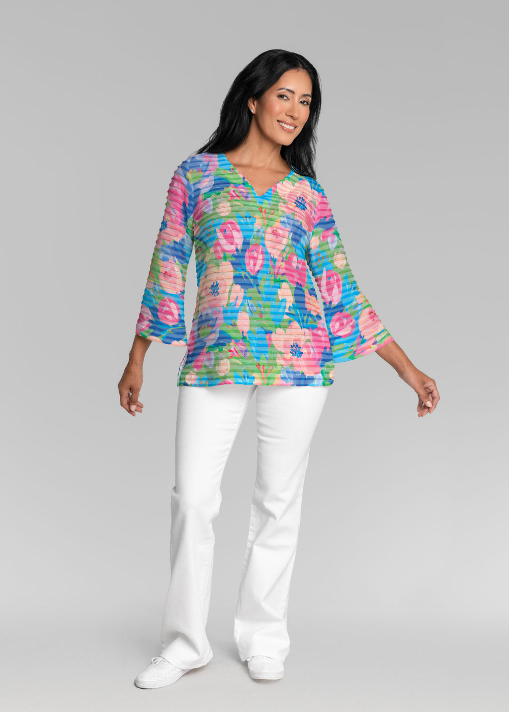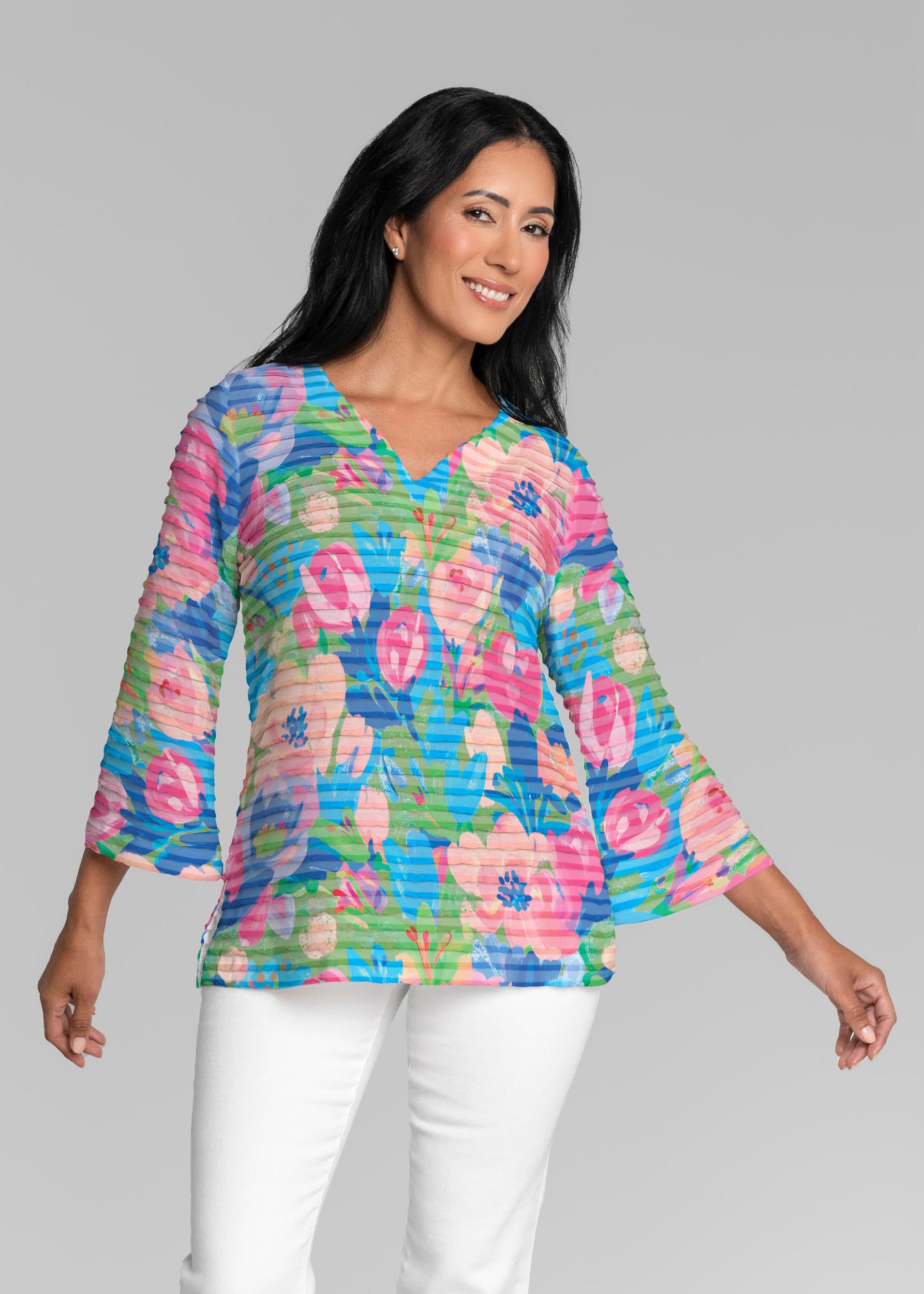 Spring Fling (26029) ~ Banded 3/4 Bell-Sleeve V-Neck Tunic