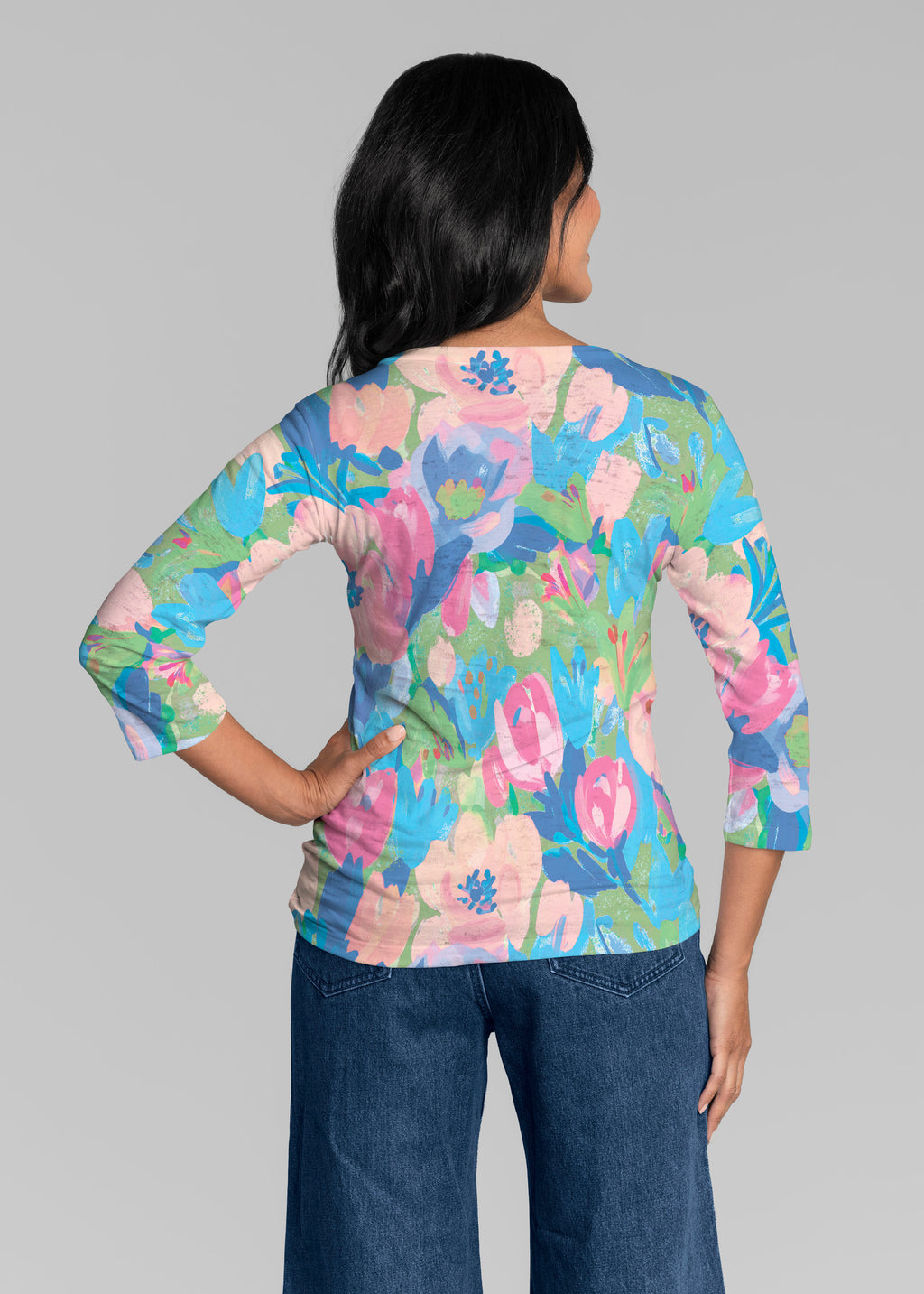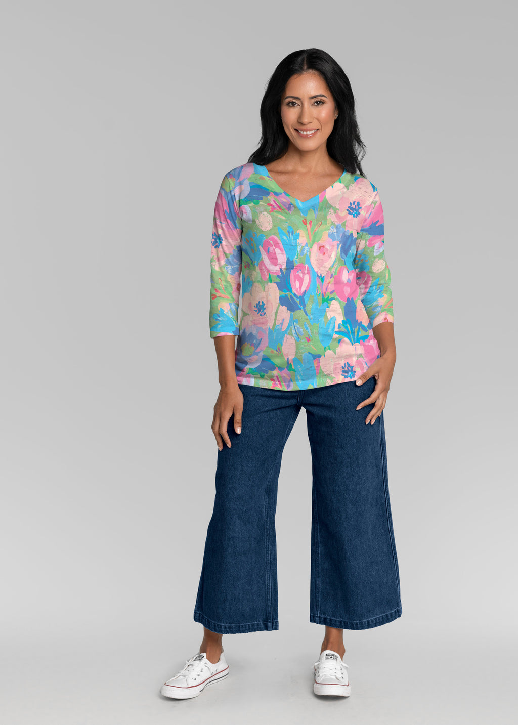 Our casual Signature 3/4 sleeve has a subtle v-neck and is perfectly proportioned and a new best-selling favorite. This relaxed fit is not only flattering but you get to pick that special print for any mood.