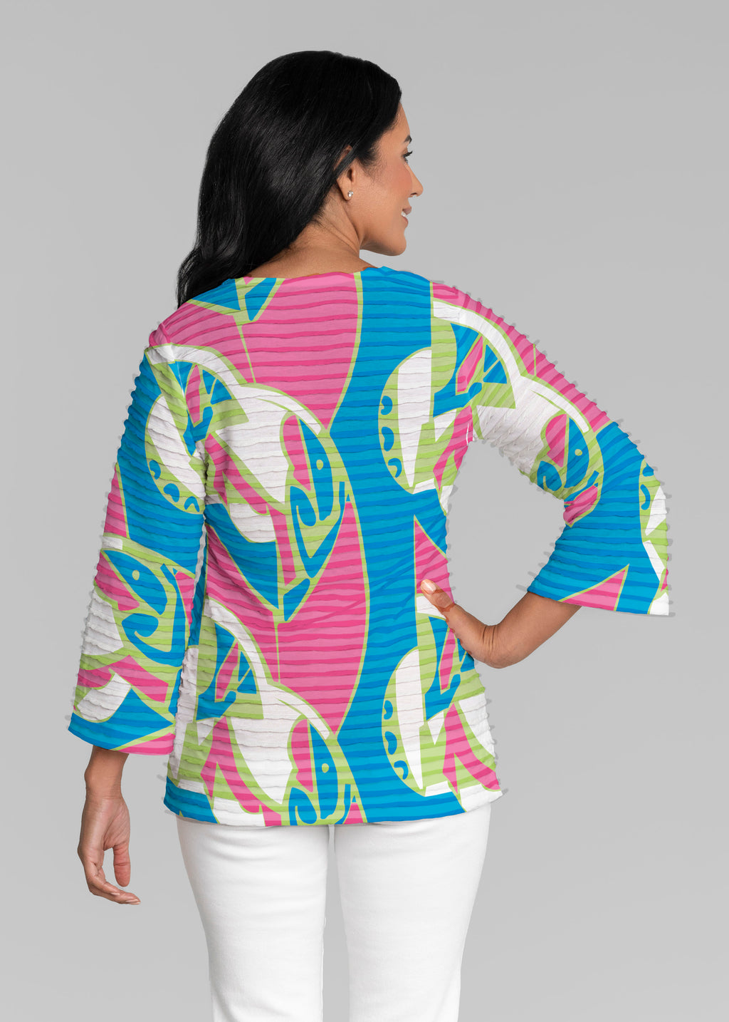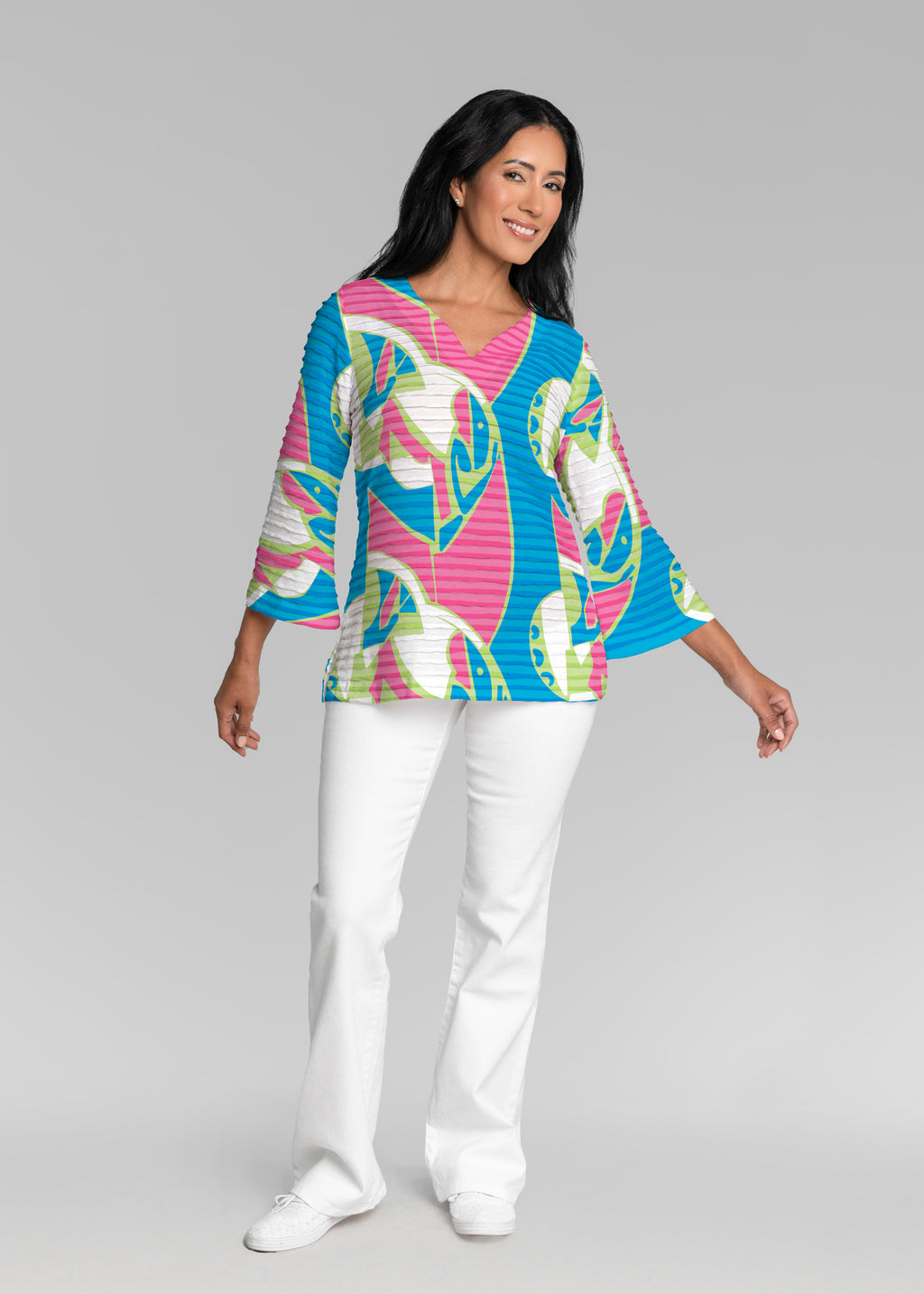 Surfin Safari (26034) ~ Banded 3/4 Bell-Sleeve V-Neck Tunic