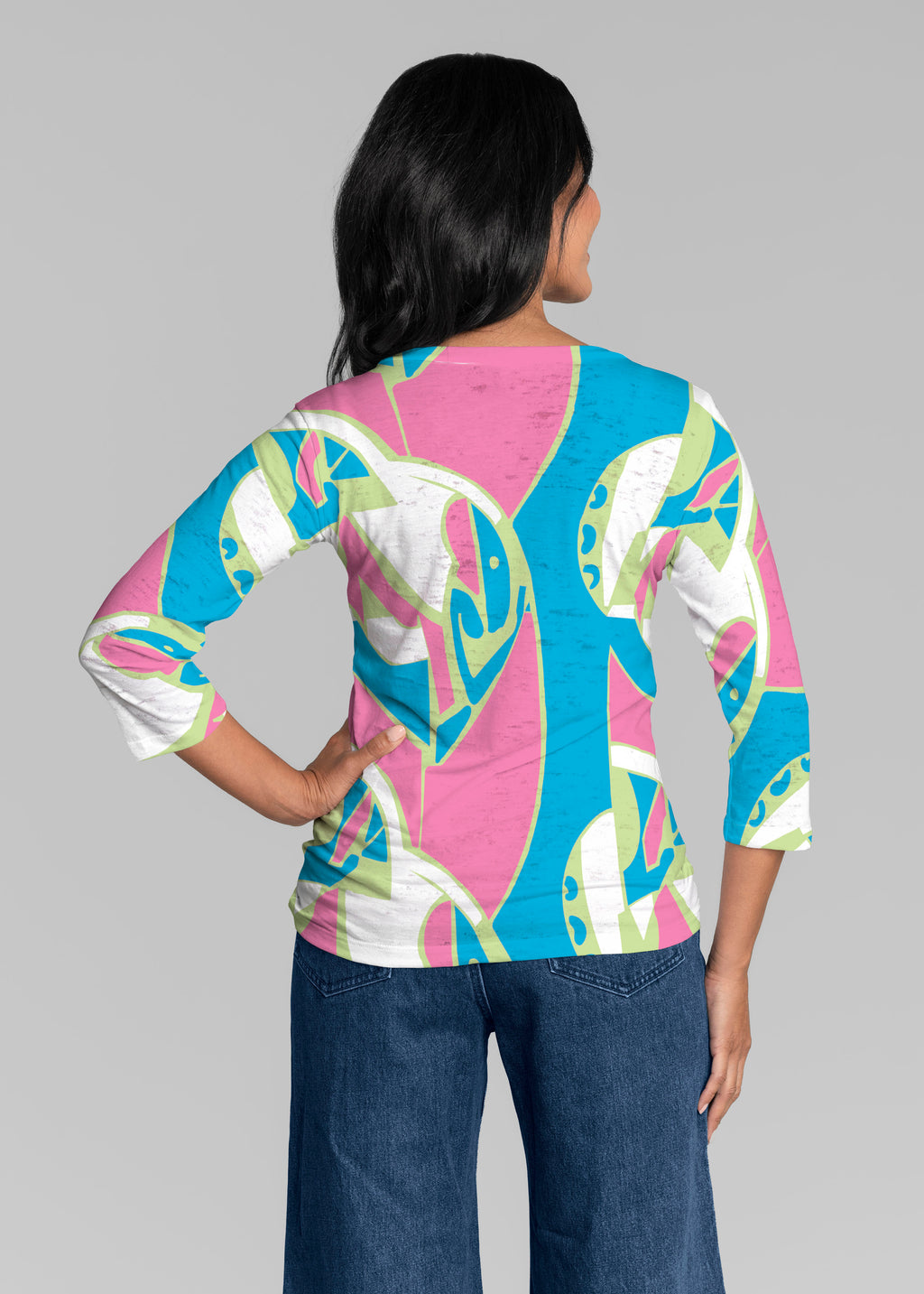 Our casual Signature 3/4 sleeve has a subtle v-neck and is perfectly proportioned and a new best-selling favorite. This relaxed fit is not only flattering but you get to pick that special print for any mood.