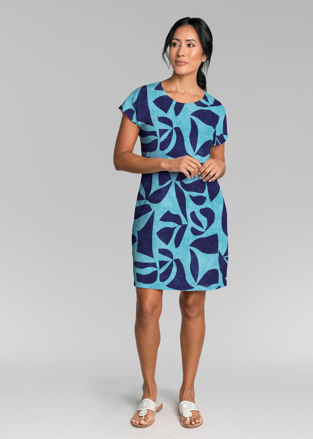 Our Lucy Tee Dress is effortless, versatile and soft to the touch -- perfect for all day style and comfort. A soft crew neckline, seamless sleeve and a relaxed shape made in our vibrant Lucy fabric ends above the knee.
