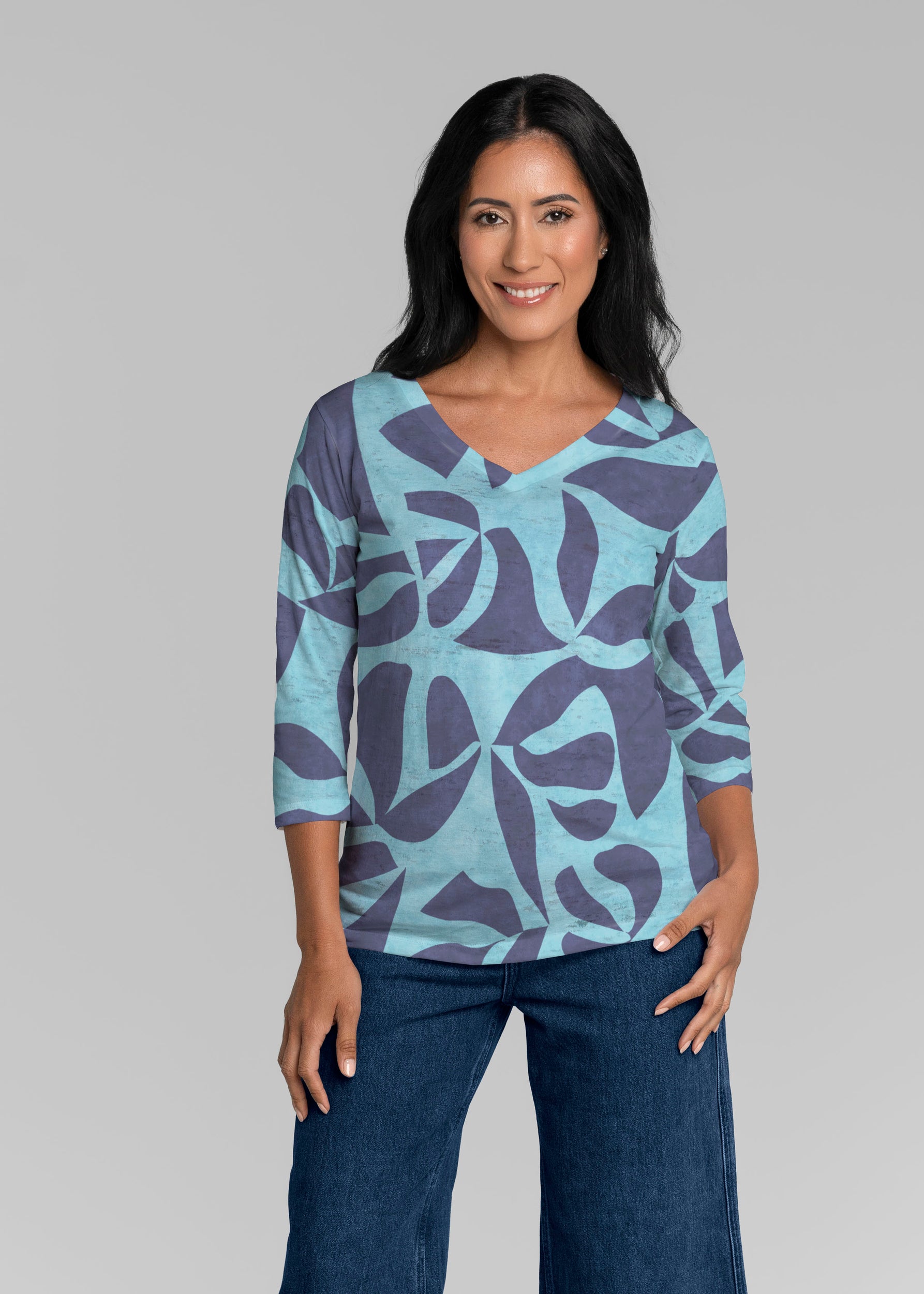 Our casual Signature 3/4 sleeve has a subtle v-neck and is perfectly proportioned and a new best-selling favorite. This relaxed fit is not only flattering but you get to pick that special print for any mood.