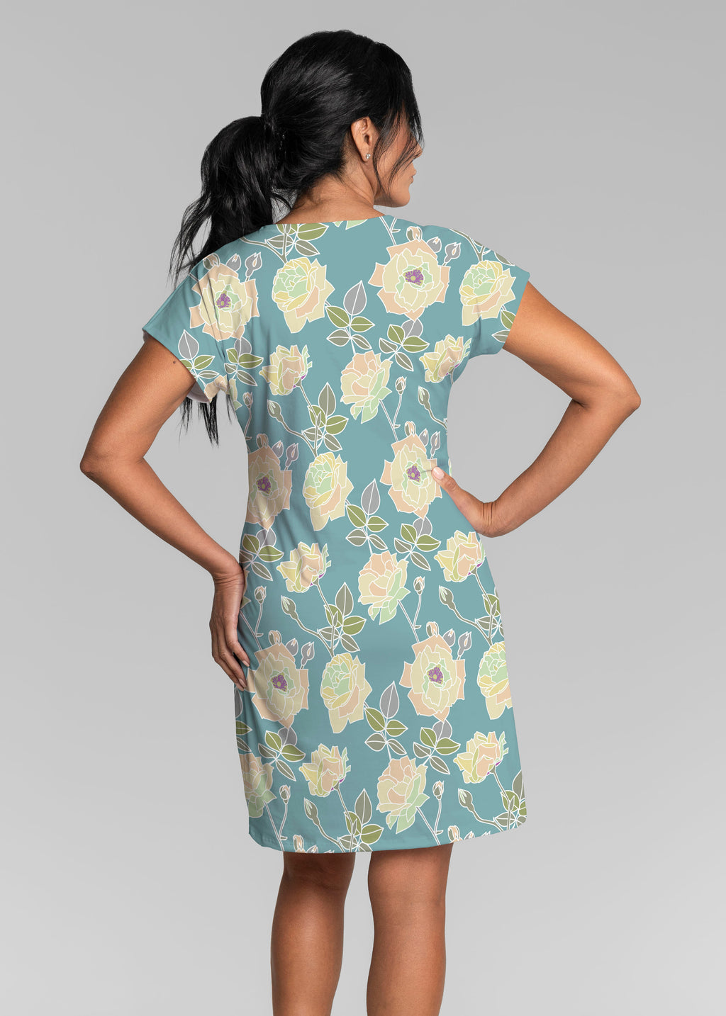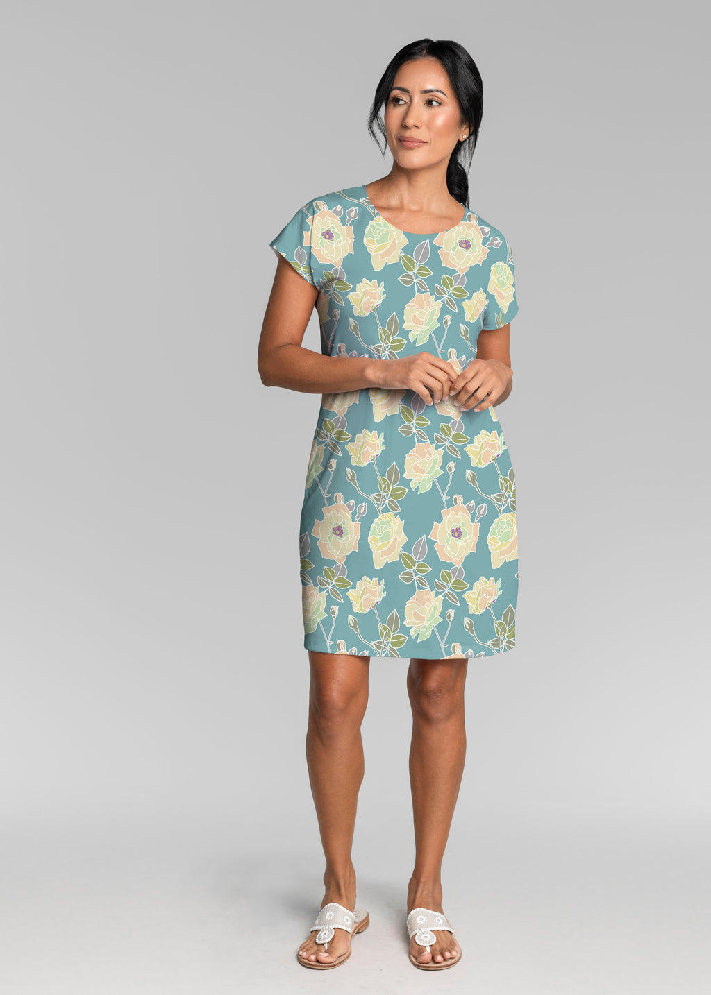 Our Lucy Tee Dress is effortless, versatile and soft to the touch -- perfect for all day style and comfort. A soft crew neckline, seamless sleeve and a relaxed shape made in our vibrant Lucy fabric ends above the knee.