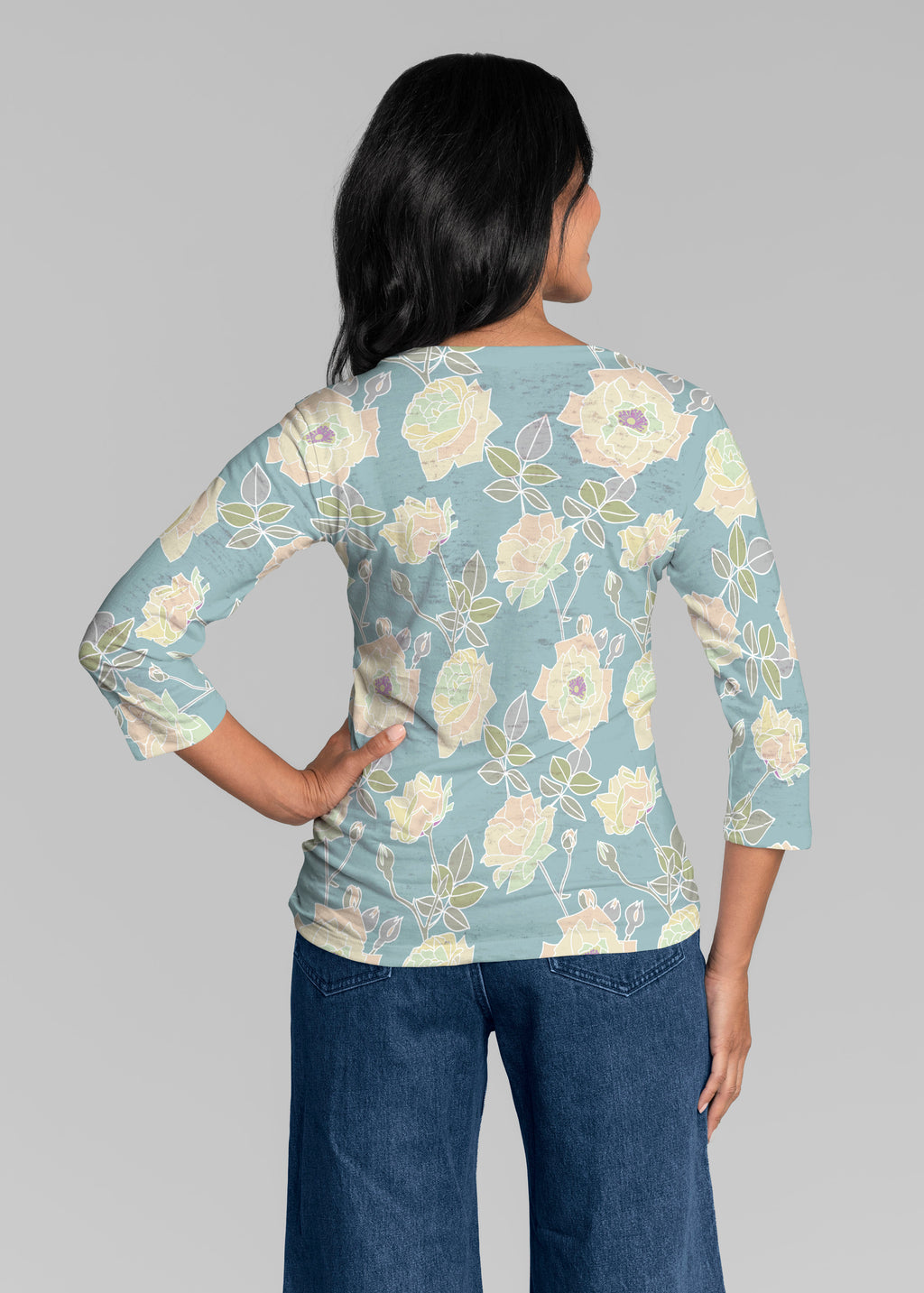 Our casual Signature 3/4 sleeve has a subtle v-neck and is perfectly proportioned and a new best-selling favorite. This relaxed fit is not only flattering but you get to pick that special print for any mood.