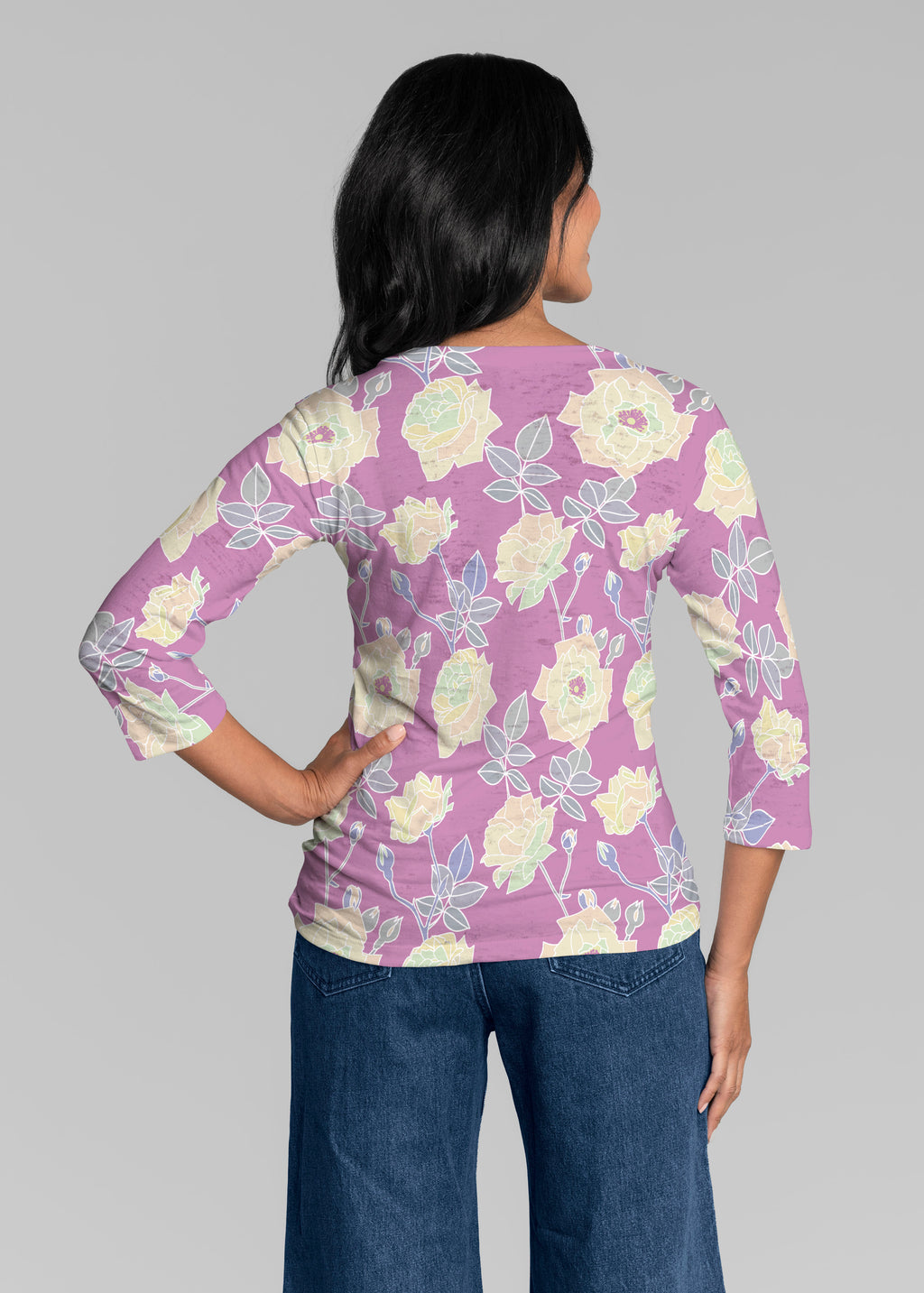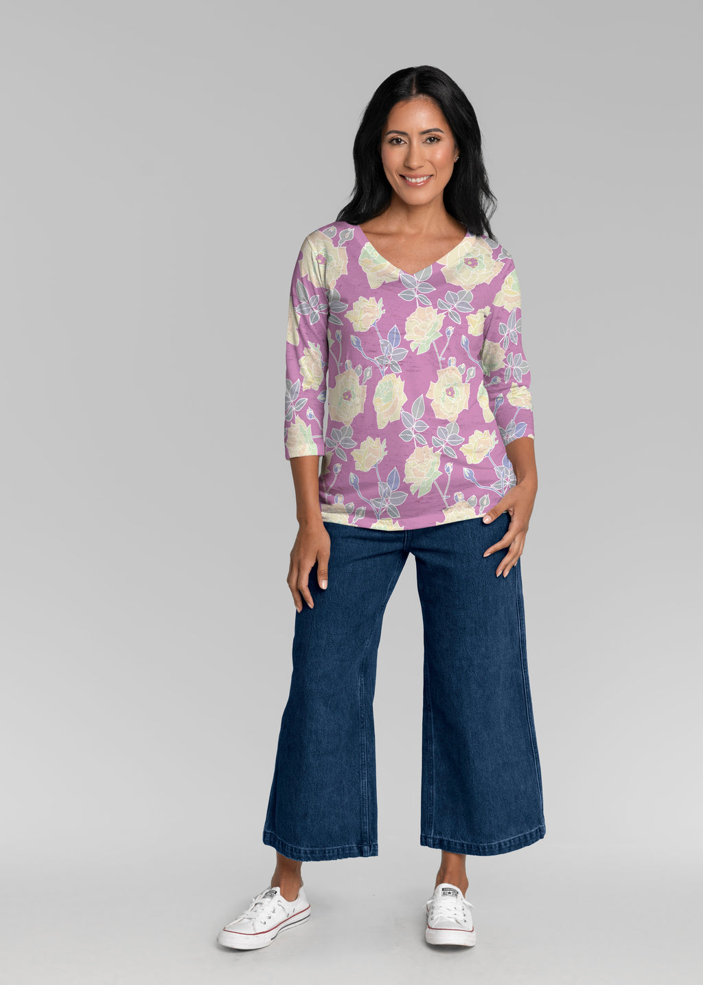 Our casual Signature 3/4 sleeve has a subtle v-neck and is perfectly proportioned and a new best-selling favorite. This relaxed fit is not only flattering but you get to pick that special print for any mood.