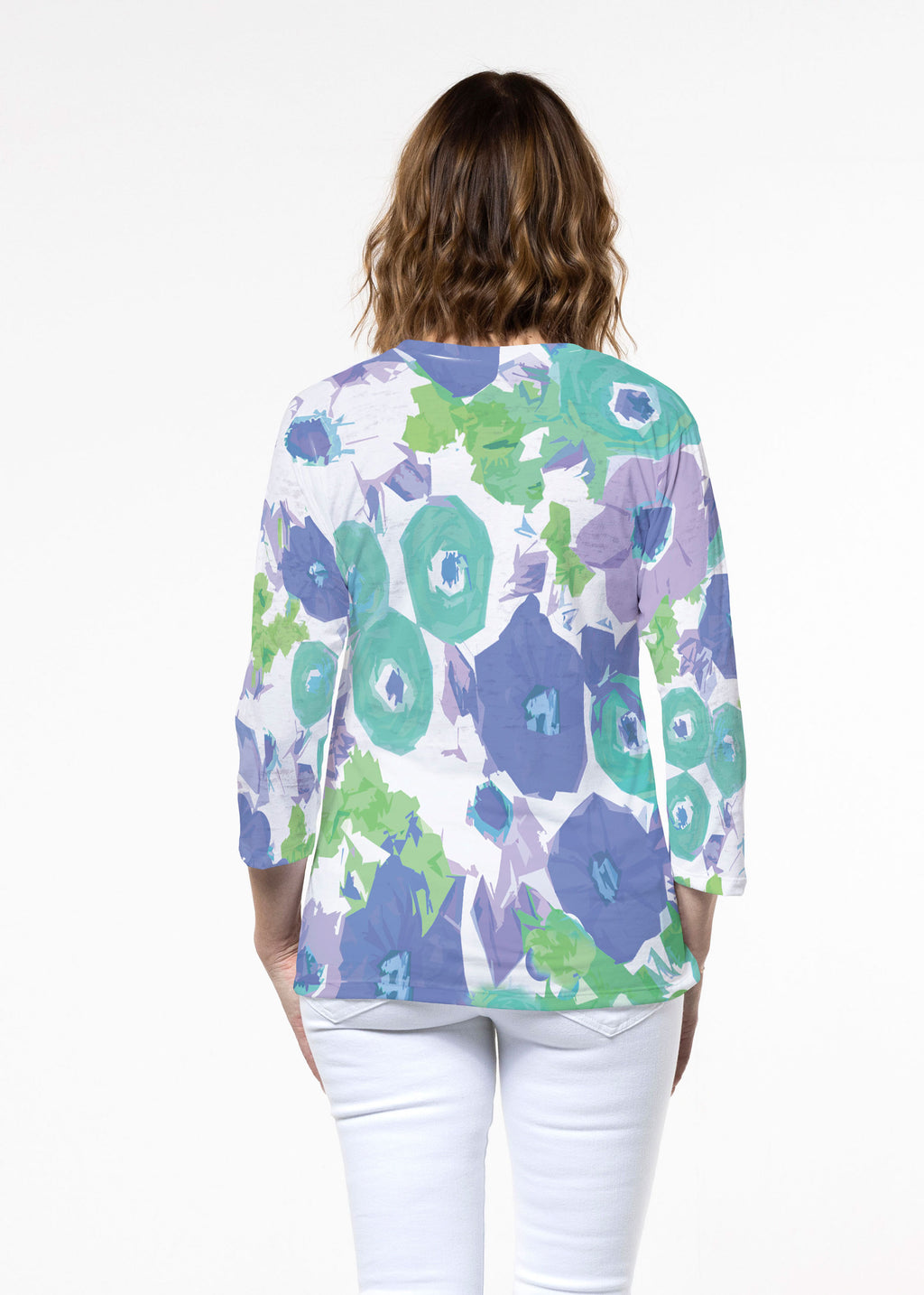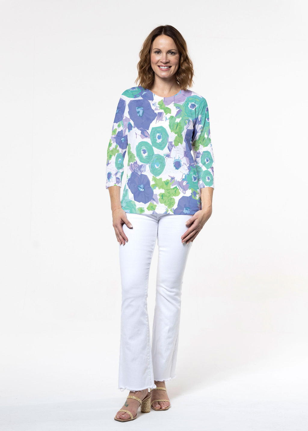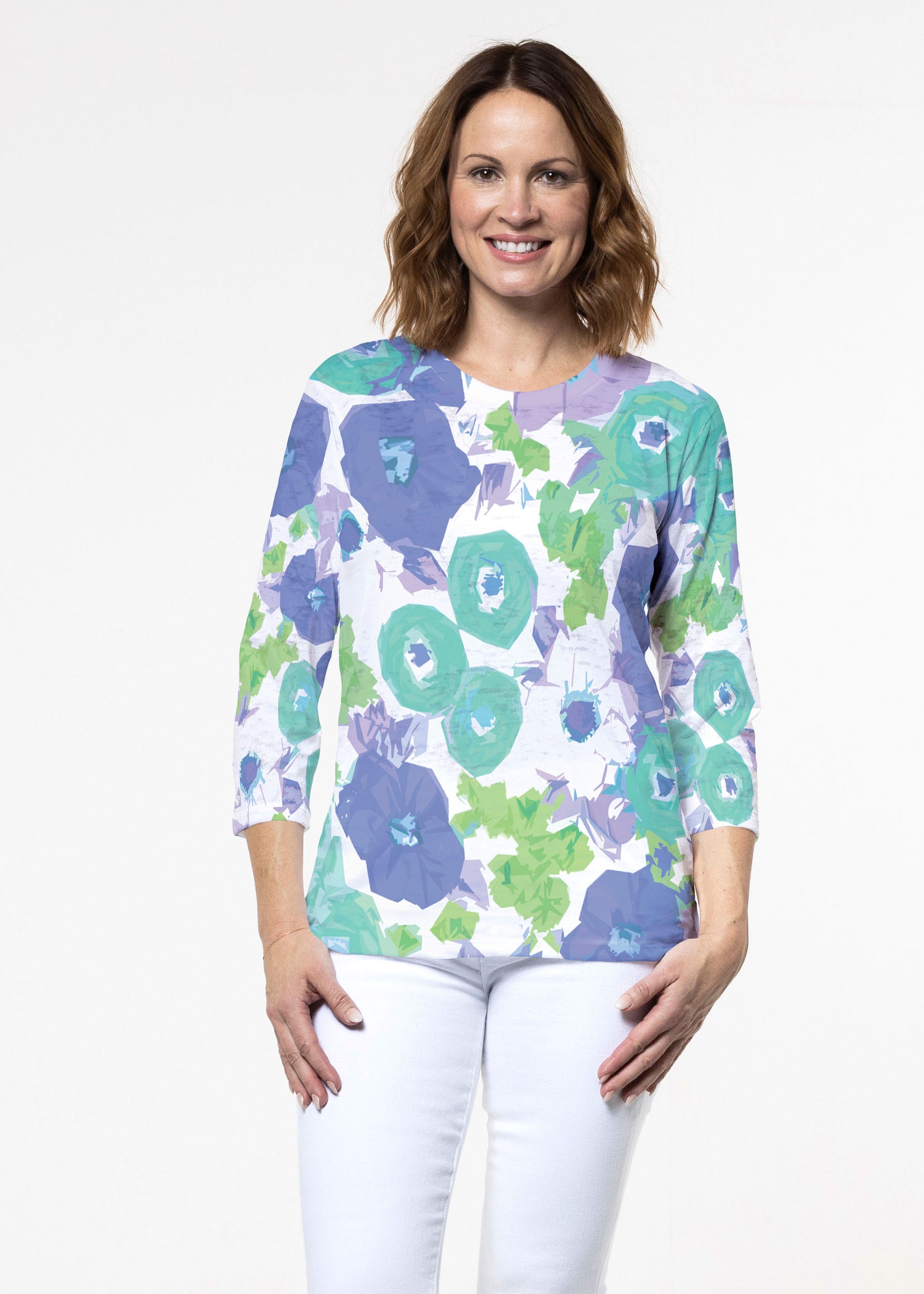 Aspen Aqua (19186) ~ Signature 3/4 Sleeve Crew Neck Top