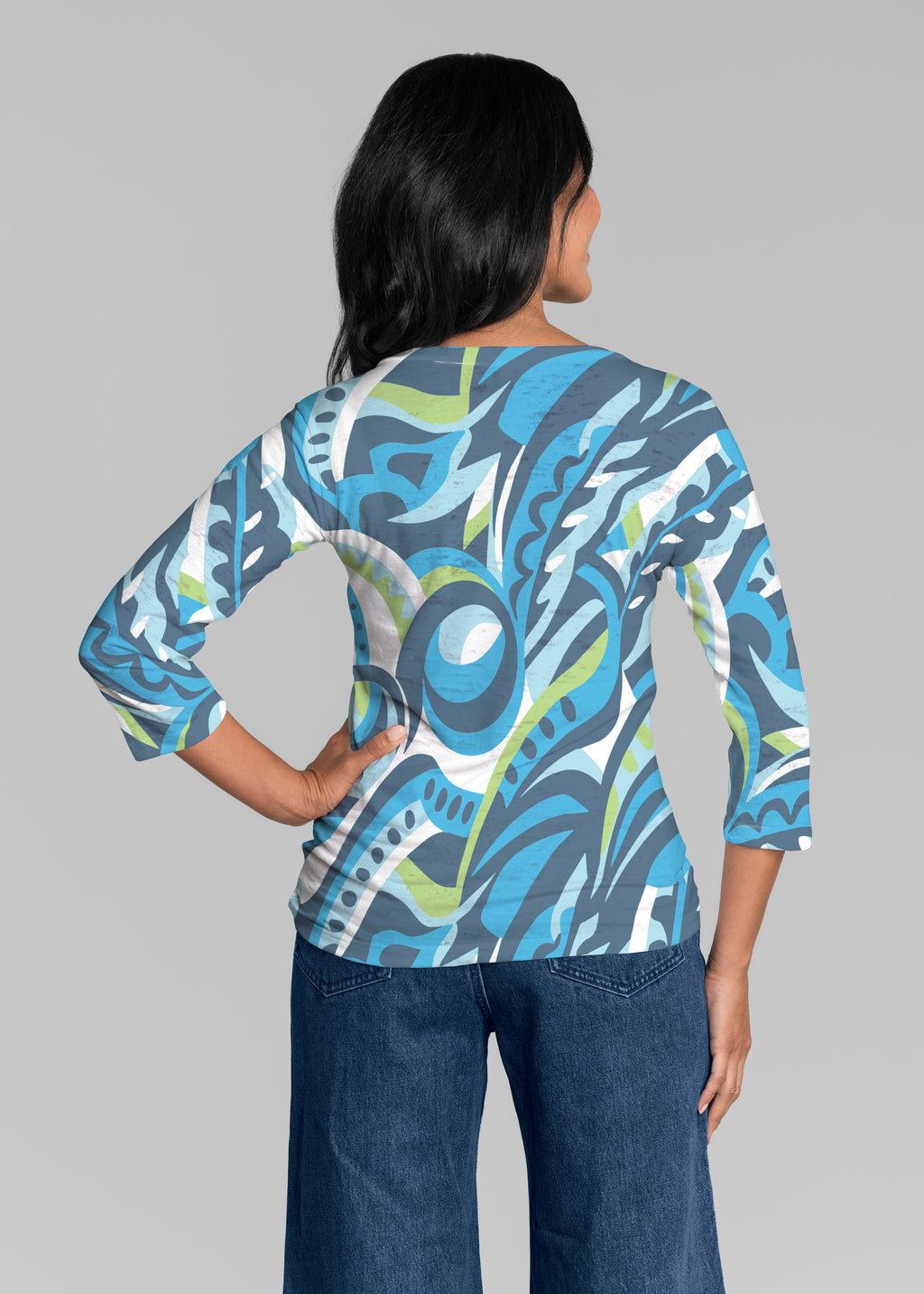 Our casual Signature 3/4 sleeve has a subtle v-neck and is perfectly proportioned and a new best-selling favorite. This relaxed fit is not only flattering but you get to pick that special print for any mood.