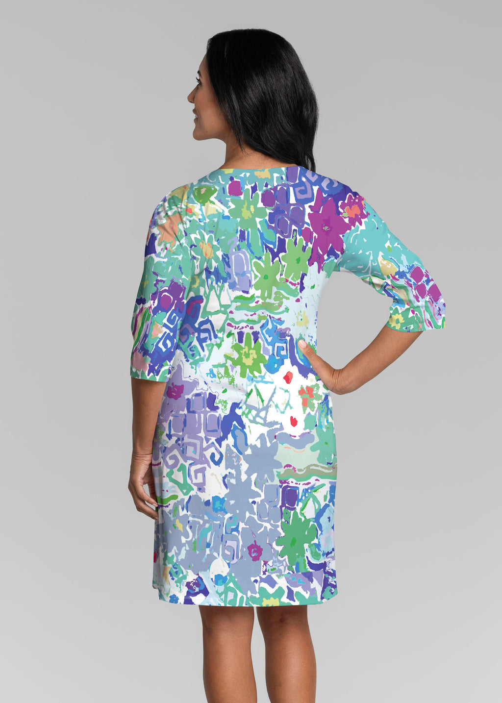 Be comfortable and fashionable all day in our soft Lucy fabric. This v-neck dress features loose 3/4 sleeves, drop shoulders and falls just at the knee.