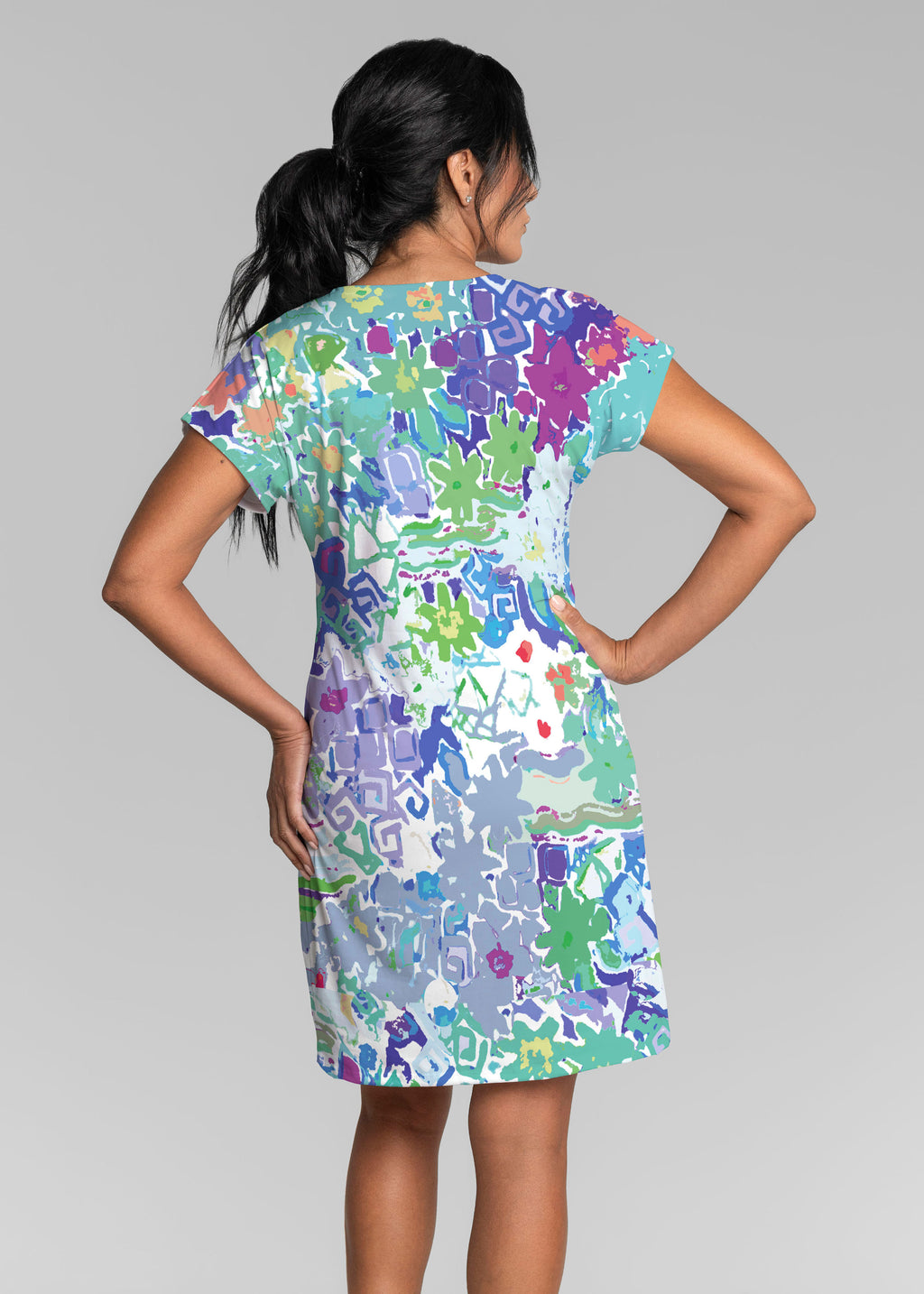 Our Lucy Tee Dress is effortless, versatile and soft to the touch -- perfect for all day style and comfort. A soft crew neckline, seamless sleeve and a relaxed shape made in our vibrant Lucy fabric ends above the knee.