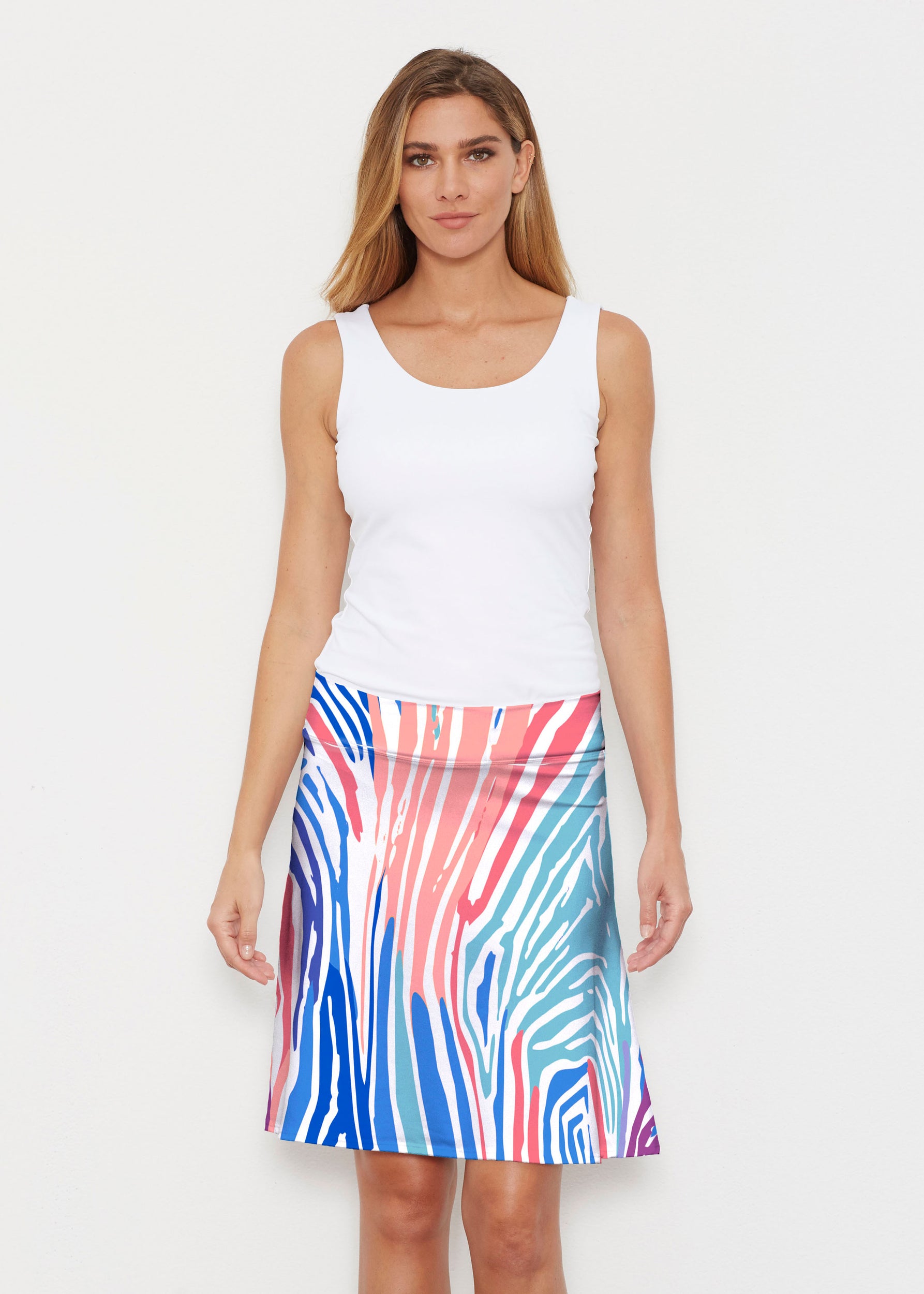 Pull-on ease increases option to shift waistline to hip or natural waist. A true ageless style, this wardrobe essential works for casual business, date night, or sporty weekend - just pick your print.