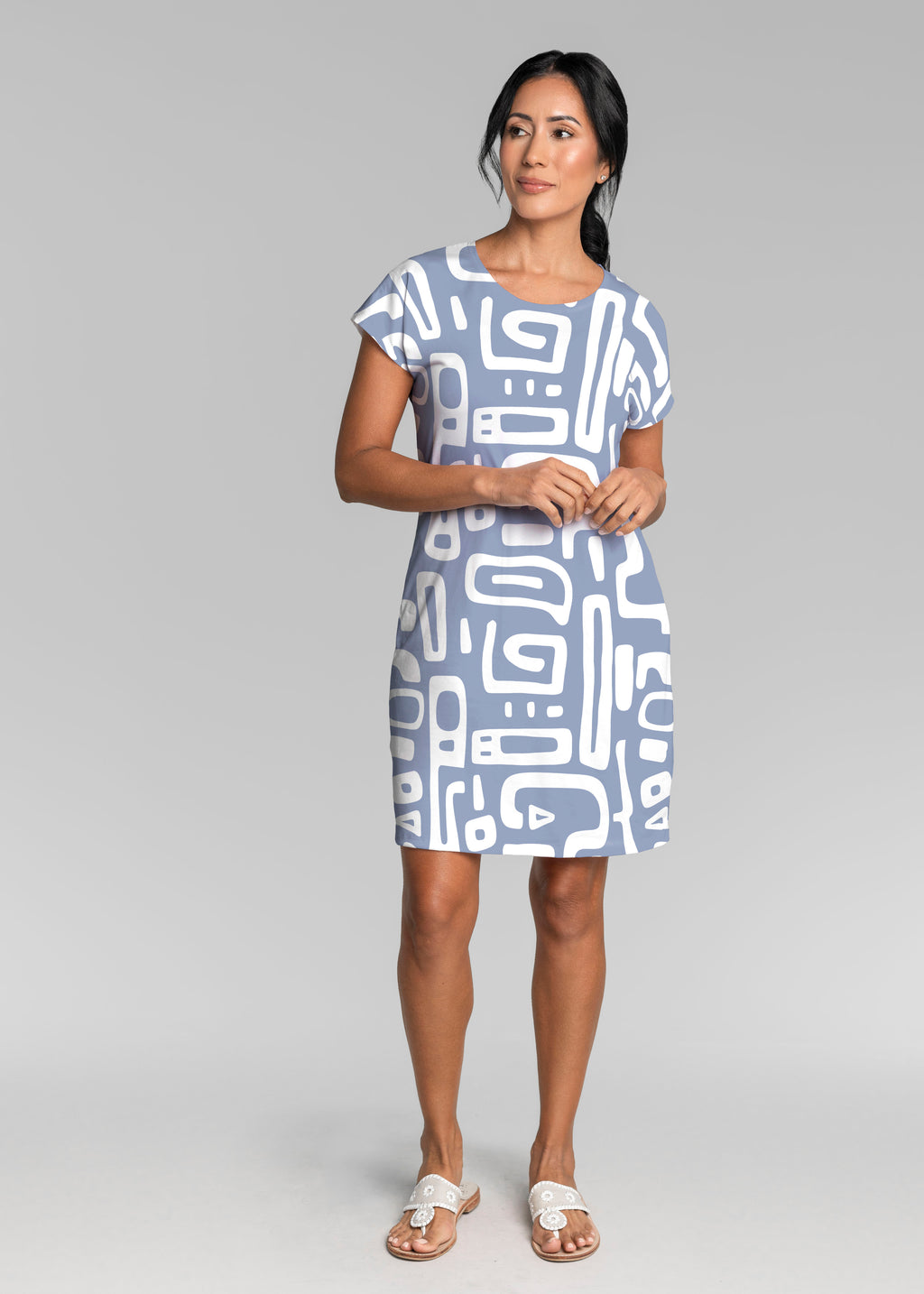 Our Lucy Tee Dress is effortless, versatile and soft to the touch -- perfect for all day style and comfort. A soft crew neckline, seamless sleeve and a relaxed shape made in our vibrant Lucy fabric ends above the knee.