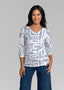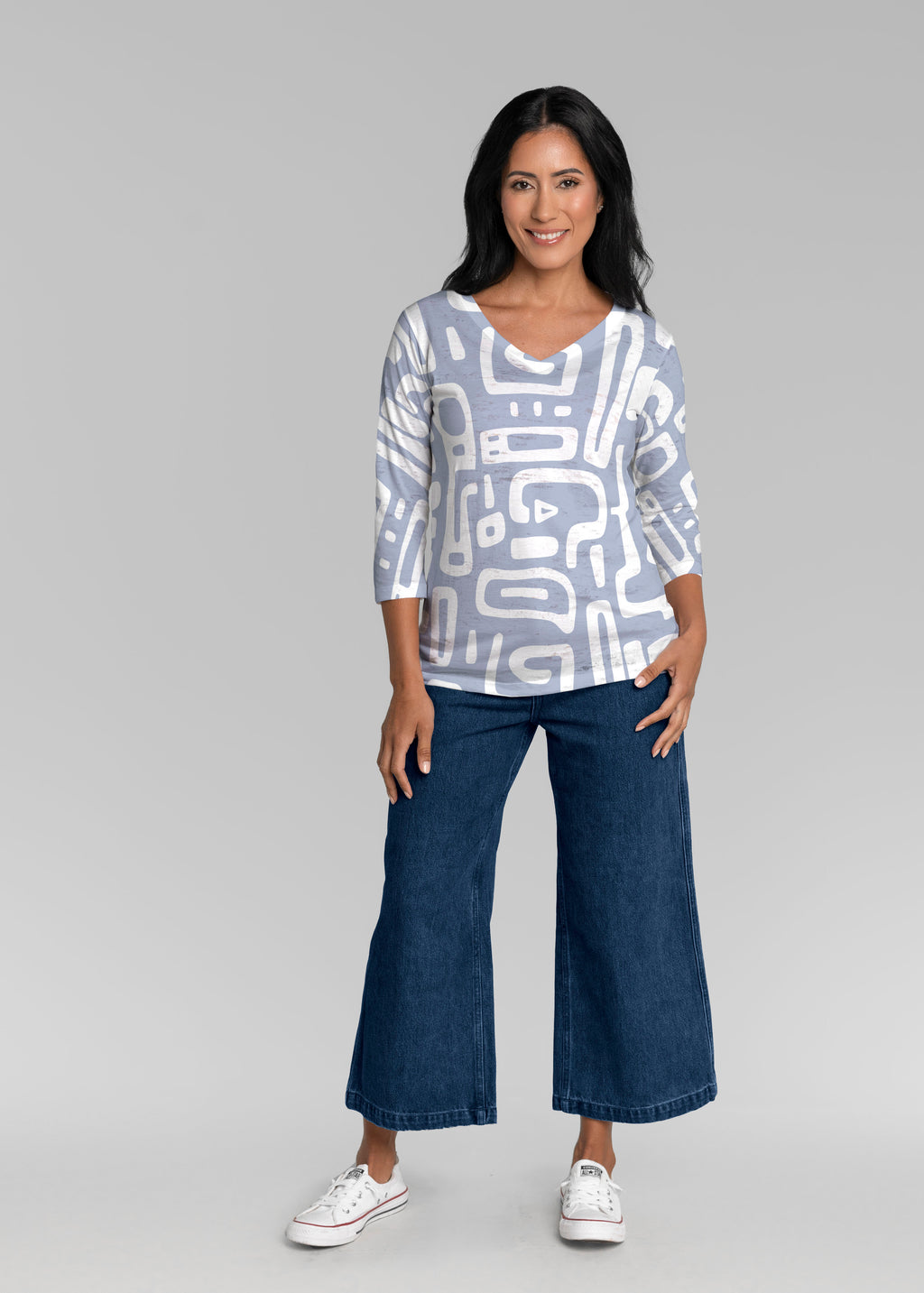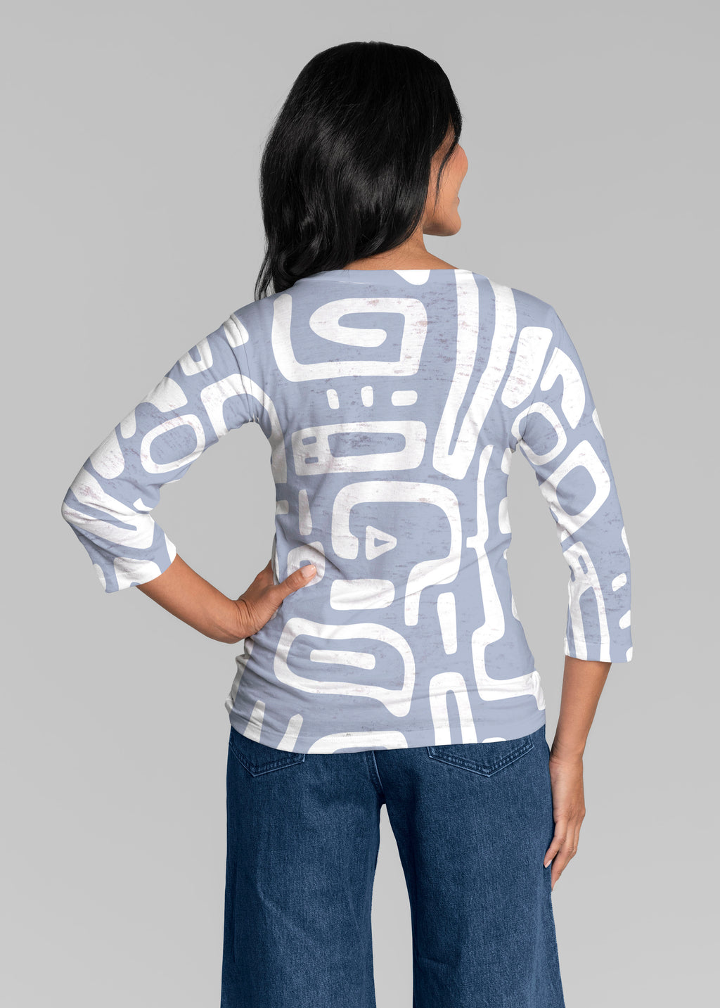 Gentle Geo Blue (26031) ~ Signature 3/4 Sleeve V-Neck Top