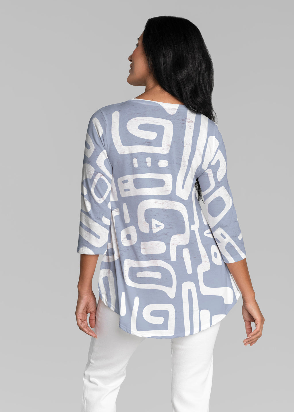 Gentle Geo Blue (26031) ~ V-neck Flowy Tunic