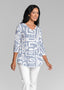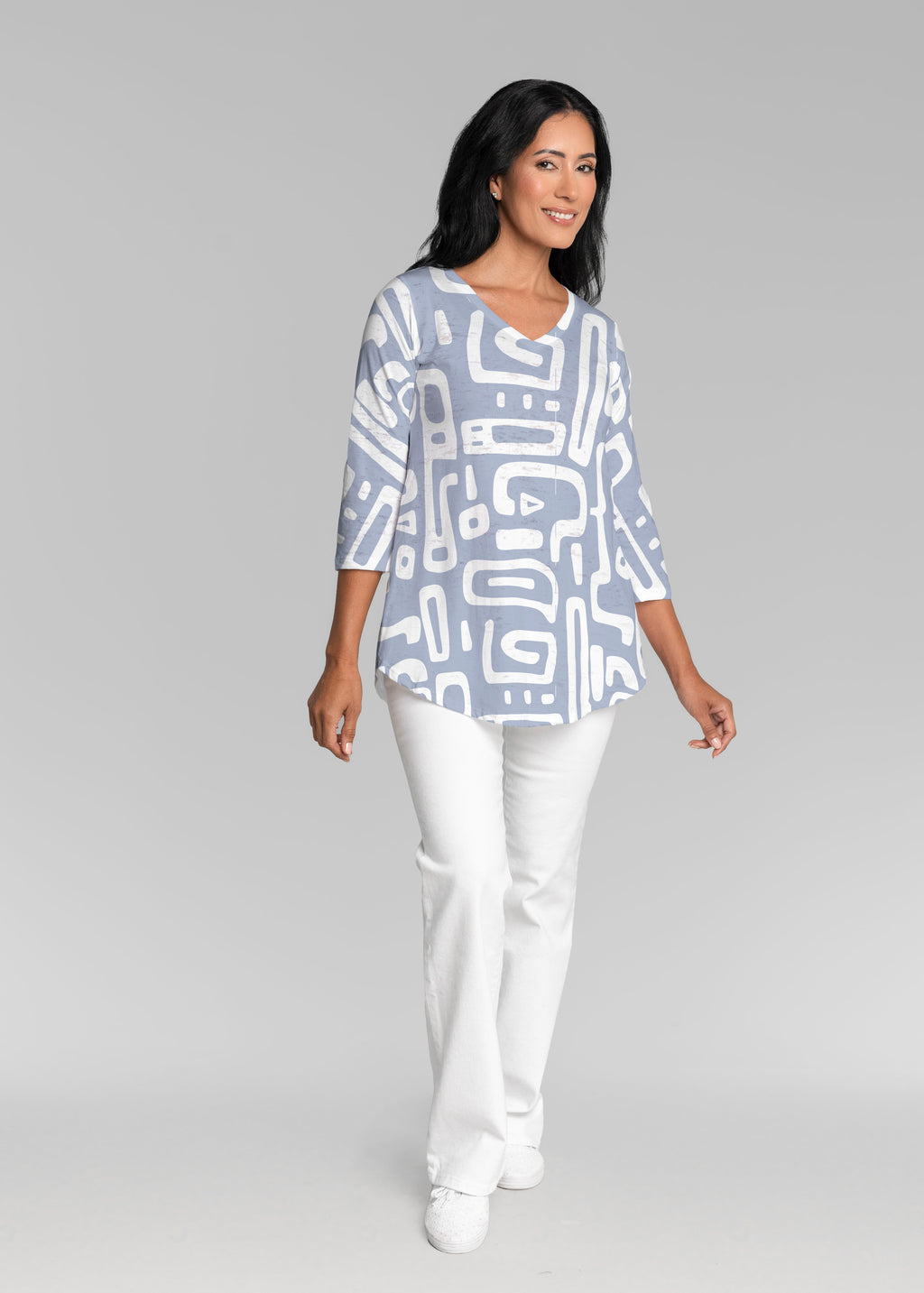 Gentle Geo Blue (26031) ~ Signature 3/4 Sleeve V-Neck Top