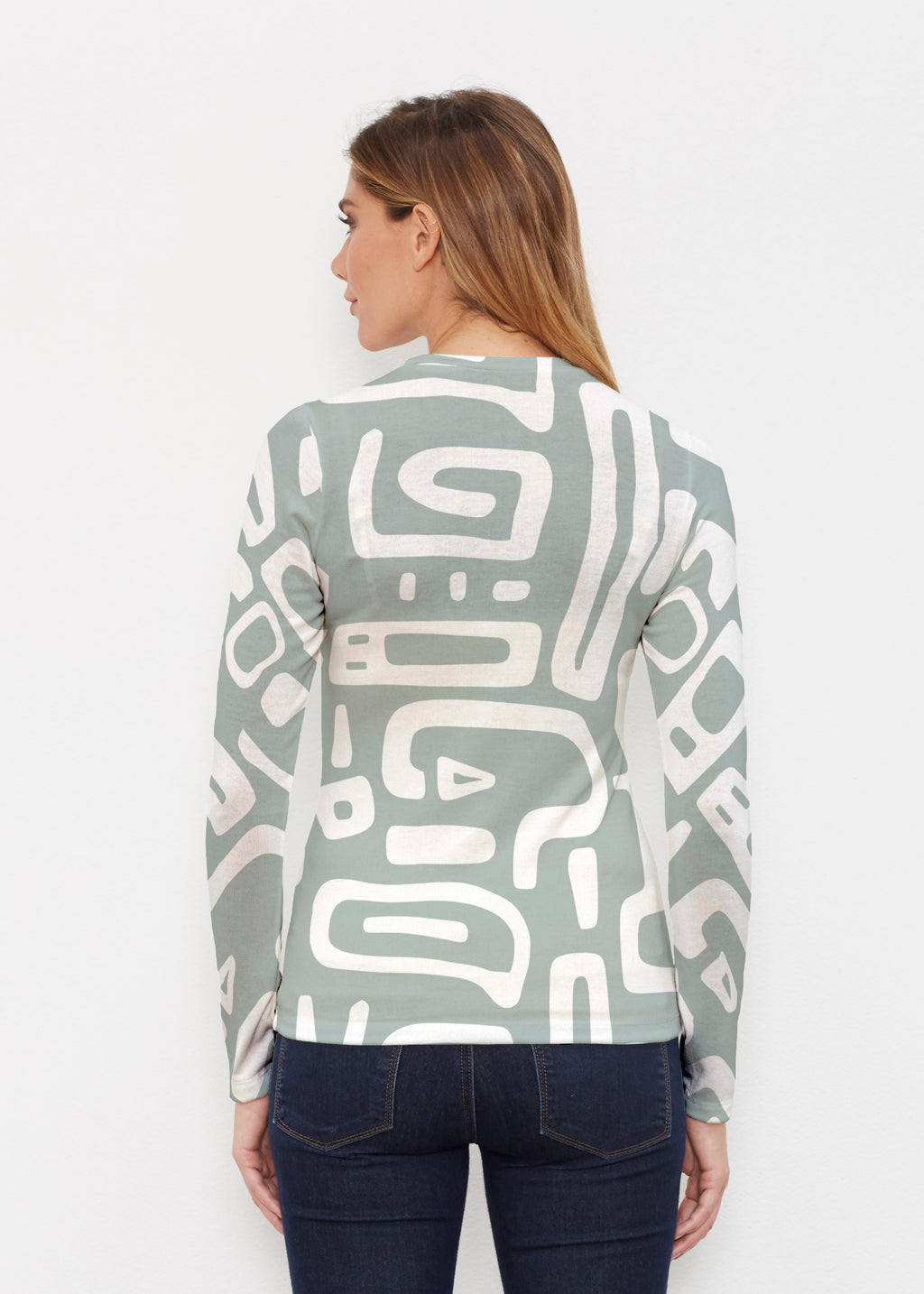 Gentle Geo Green (26055) ~ Butterknit Long Sleeve Crew Top