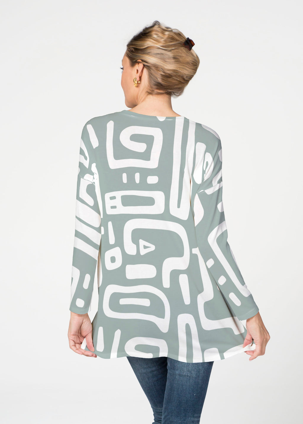 Gentle Geo Green (26055) ~ V-neck Flowy Tunic