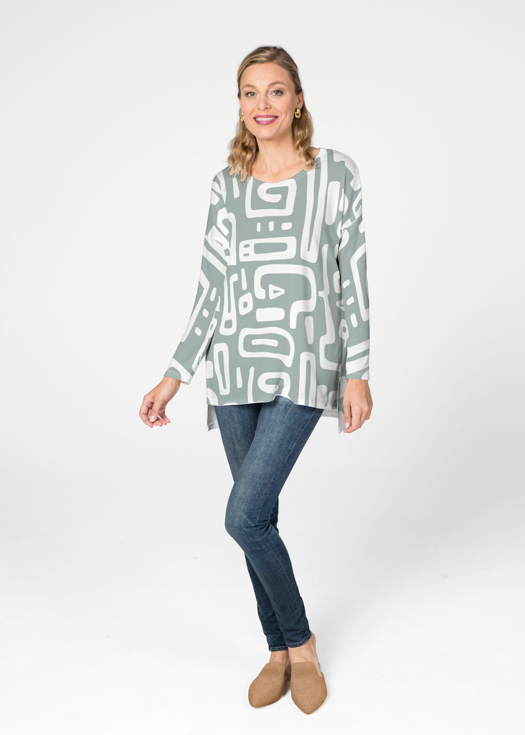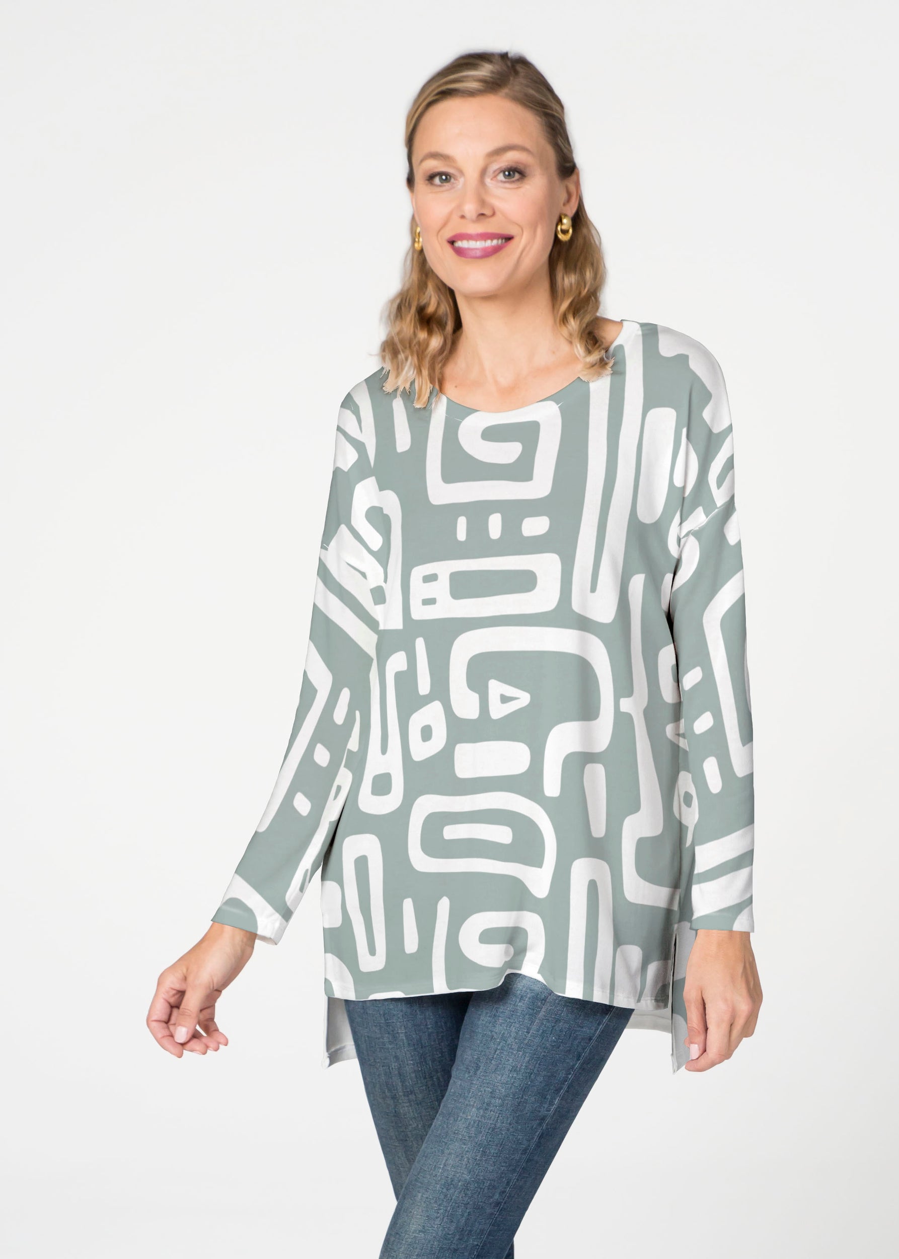 Gentle Geo Green (26055) ~ Slouchy Butterknit Top