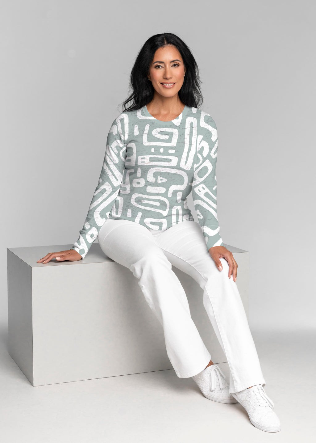 Gentle Geo Green (26055) ~ Signature Long Sleeve Crew Shirt