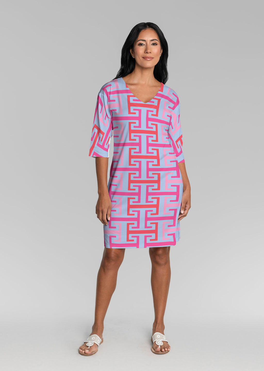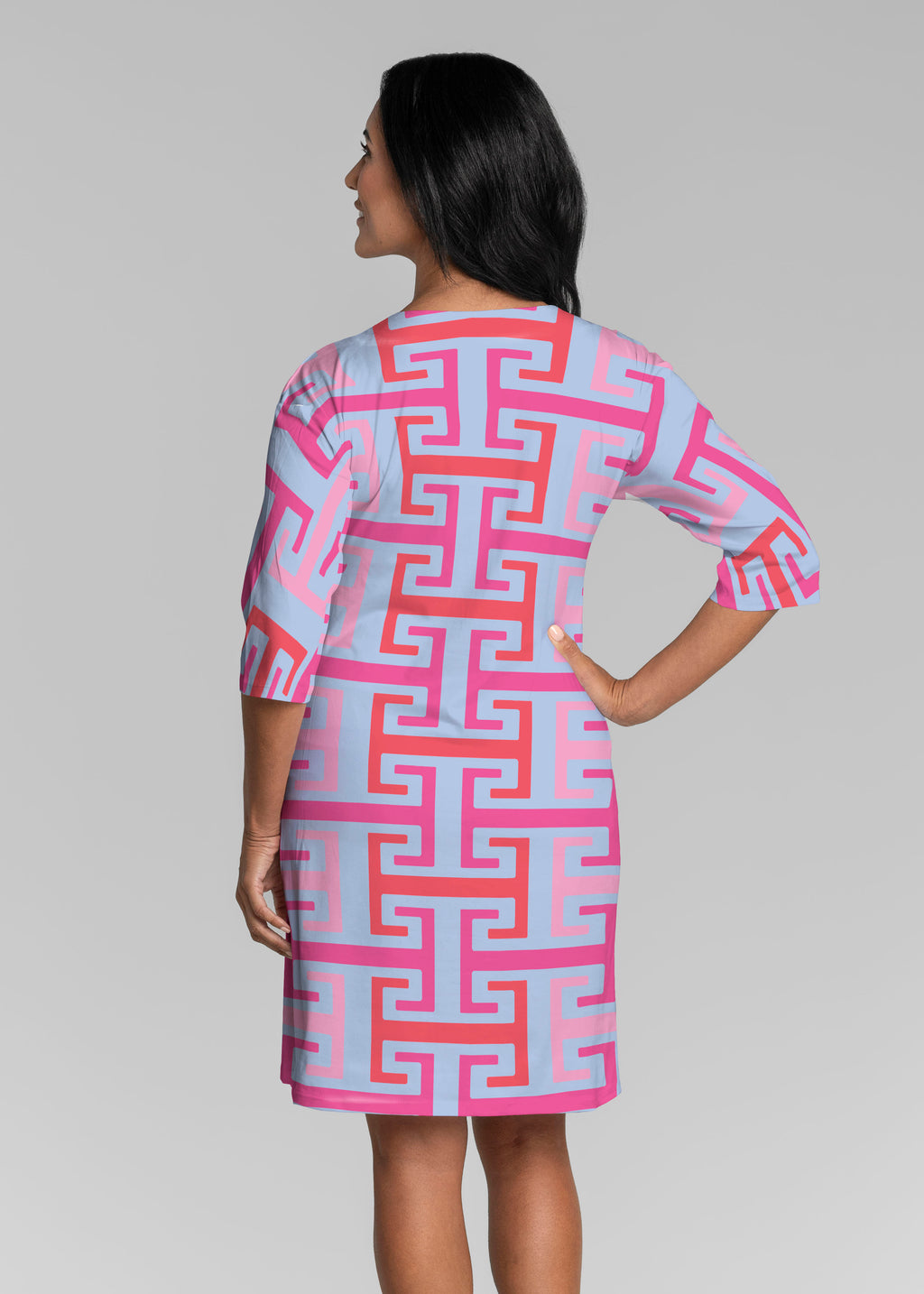 Greek Key Summer (7414) ~ Lucy 3/4 Sleeve V-Neck Dress