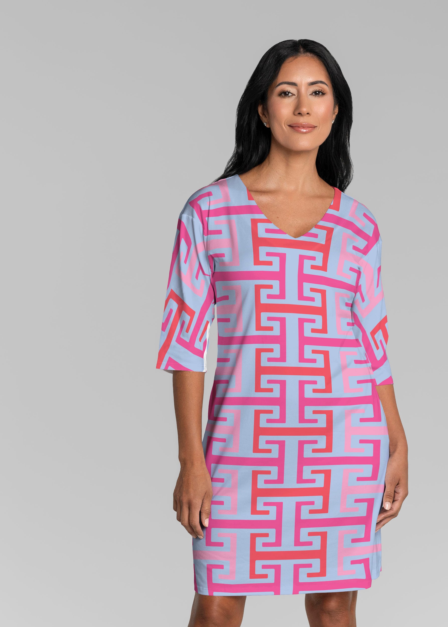 • Greek Key Summer (7414) ~ Lucy 3/4 Sleeve V-Neck Dress