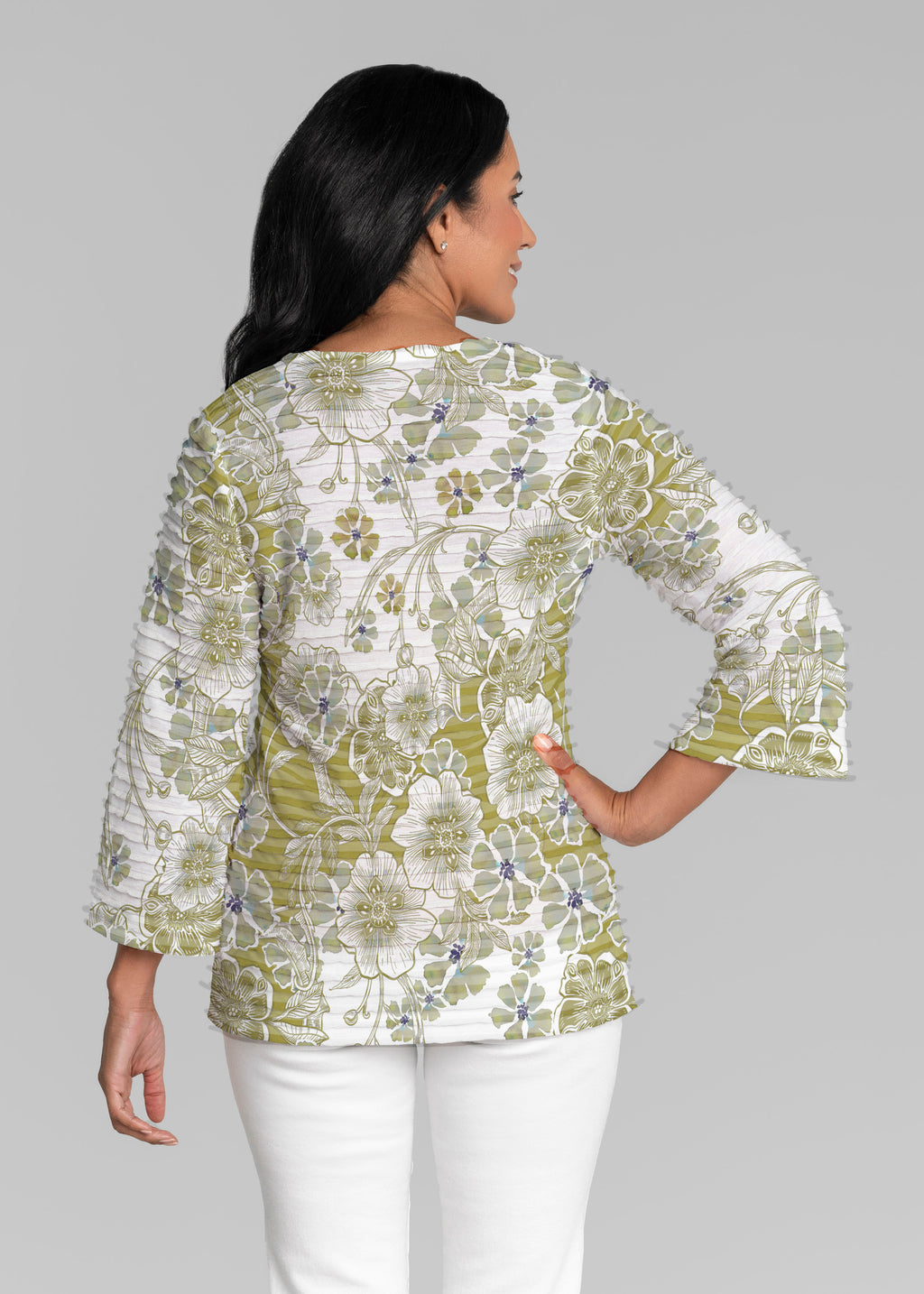 Kalani Green (26056) ~ Banded 3/4 Bell-Sleeve V-Neck Tunic