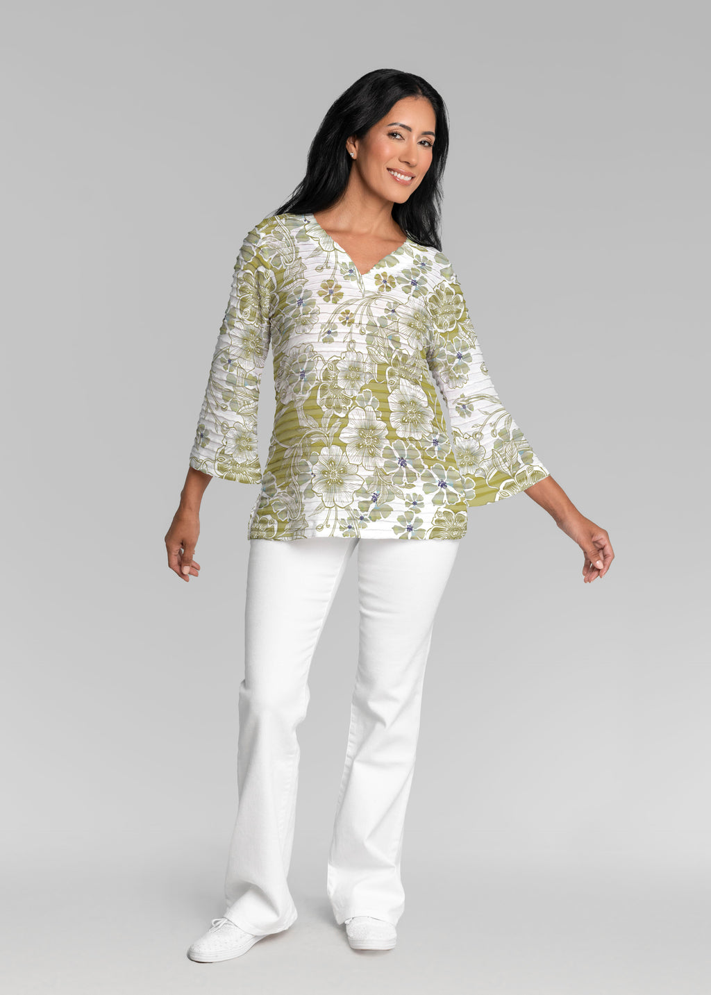 Kalani Green (26056) ~ Signature 3/4 Sleeve V-Neck Top