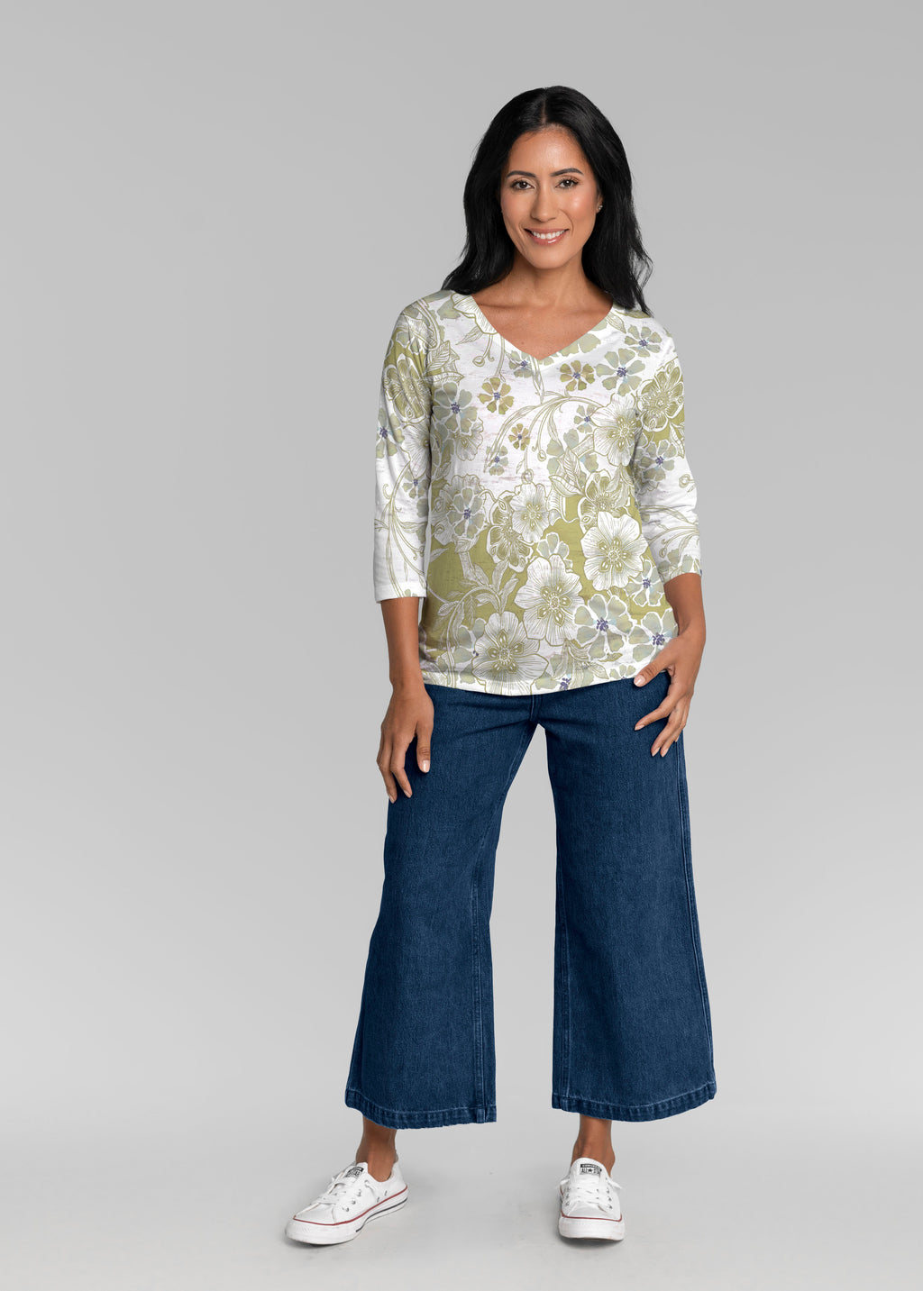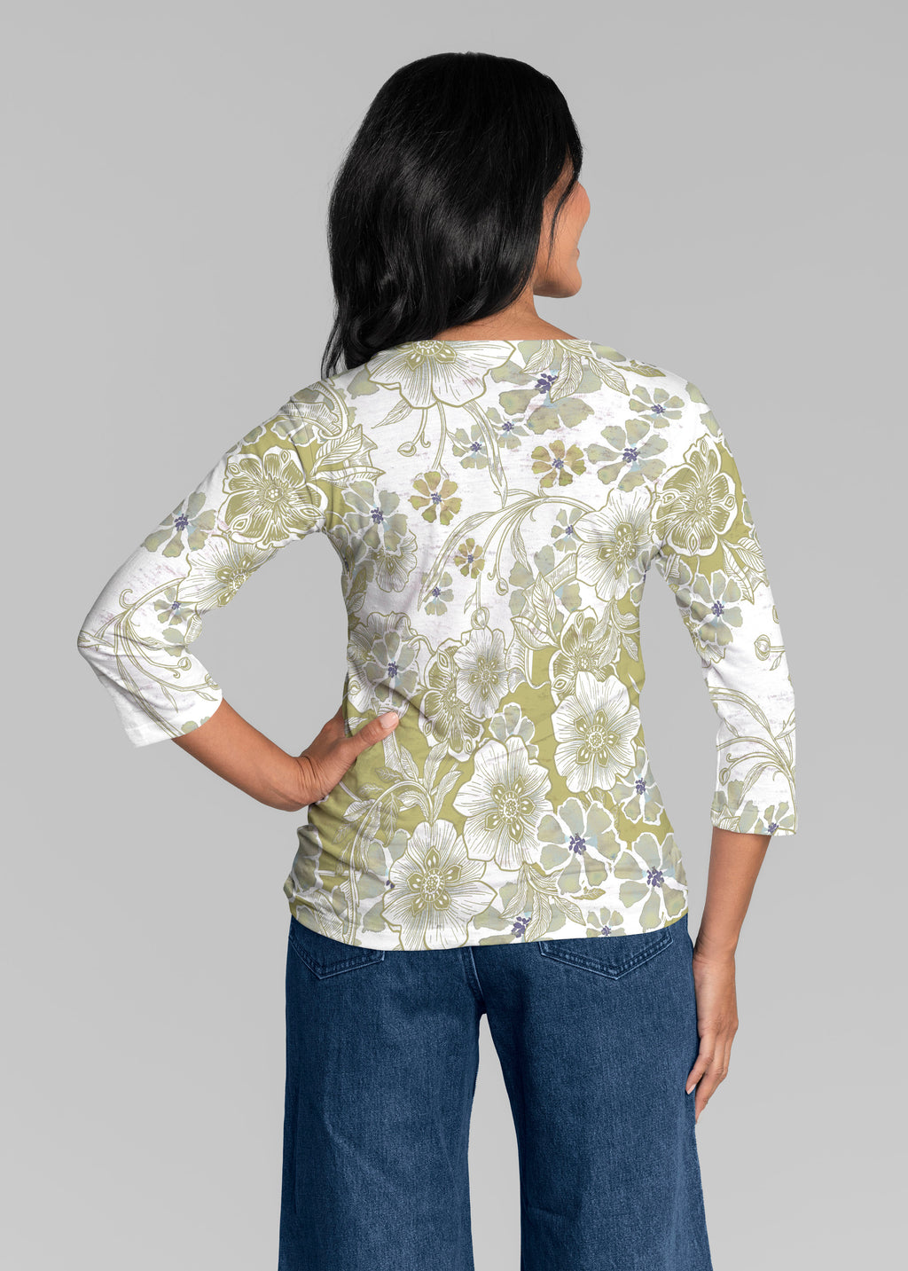 Our casual Signature 3/4 sleeve has a subtle v-neck and is perfectly proportioned and a new best-selling favorite. This relaxed fit is not only flattering but you get to pick that special print for any mood.