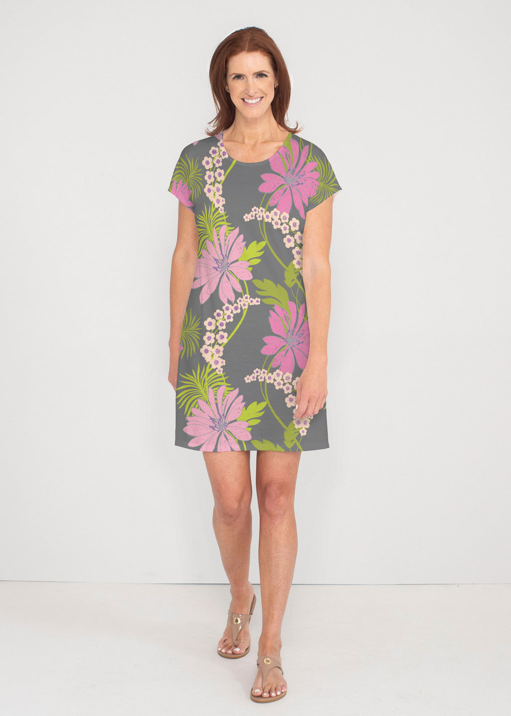 Our Lucy Tee Dress is effortless, versatile and soft to the touch -- perfect for all day style and comfort. A soft crew neckline, seamless sleeve and a relaxed shape made in our vibrant Lucy fabric ends above the knee.