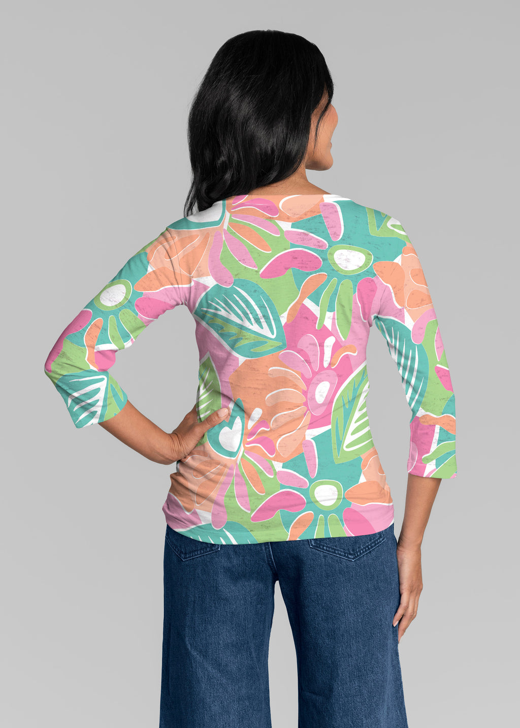 Our casual Signature 3/4 sleeve has a subtle v-neck and is perfectly proportioned and a new best-selling favorite. This relaxed fit is not only flattering but you get to pick that special print for any mood.