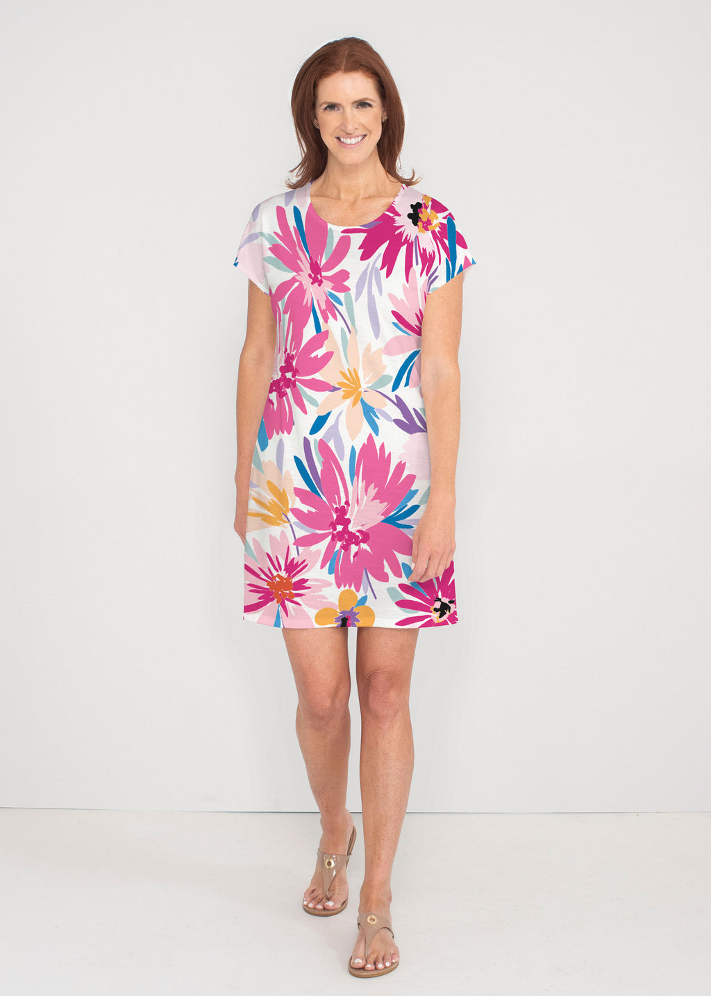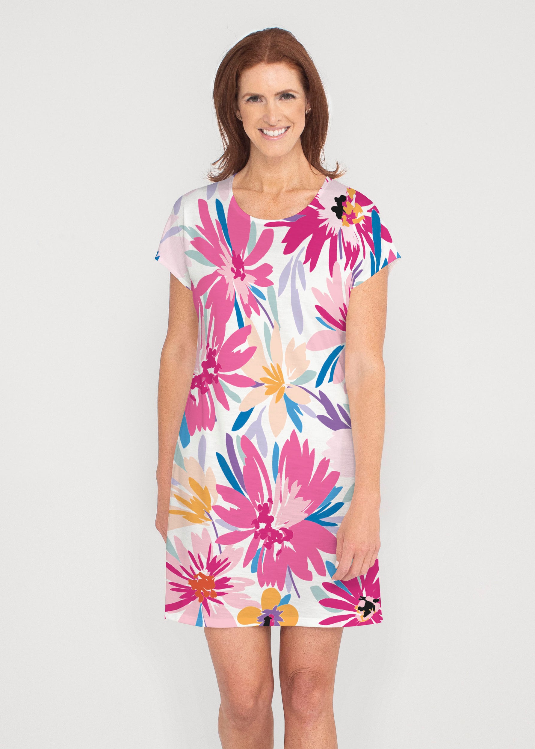 Our Lucy Tee Dress is effortless, versatile and soft to the touch -- perfect for all day style and comfort. A soft crew neckline, seamless sleeve and a relaxed shape made in our vibrant Lucy fabric ends above the knee.