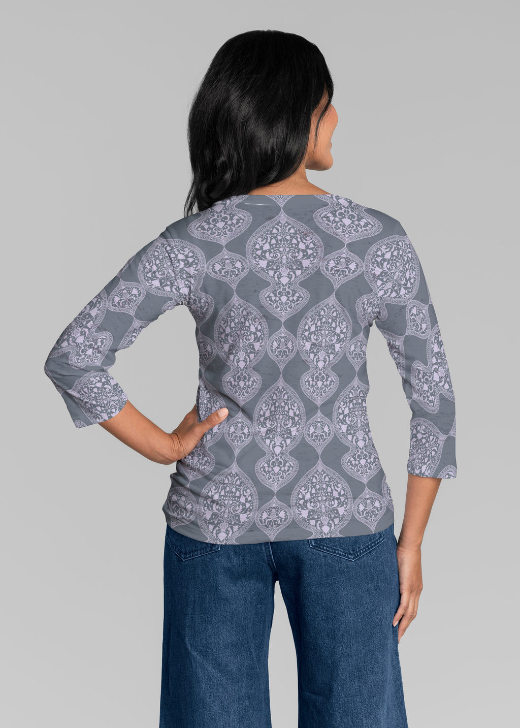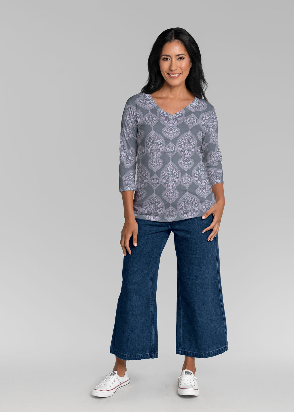 Our casual Signature 3/4 sleeve has a subtle v-neck and is perfectly proportioned and a new best-selling favorite. This relaxed fit is not only flattering but you get to pick that special print for any mood.