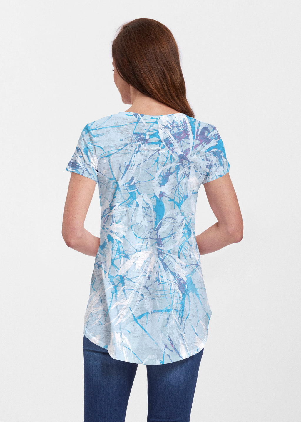An effortlessly flattering tunic in our soft Signature burnout fabric featuring short sleeves and a scoop neck with a body that flows into a full, swinging shirttail hem.