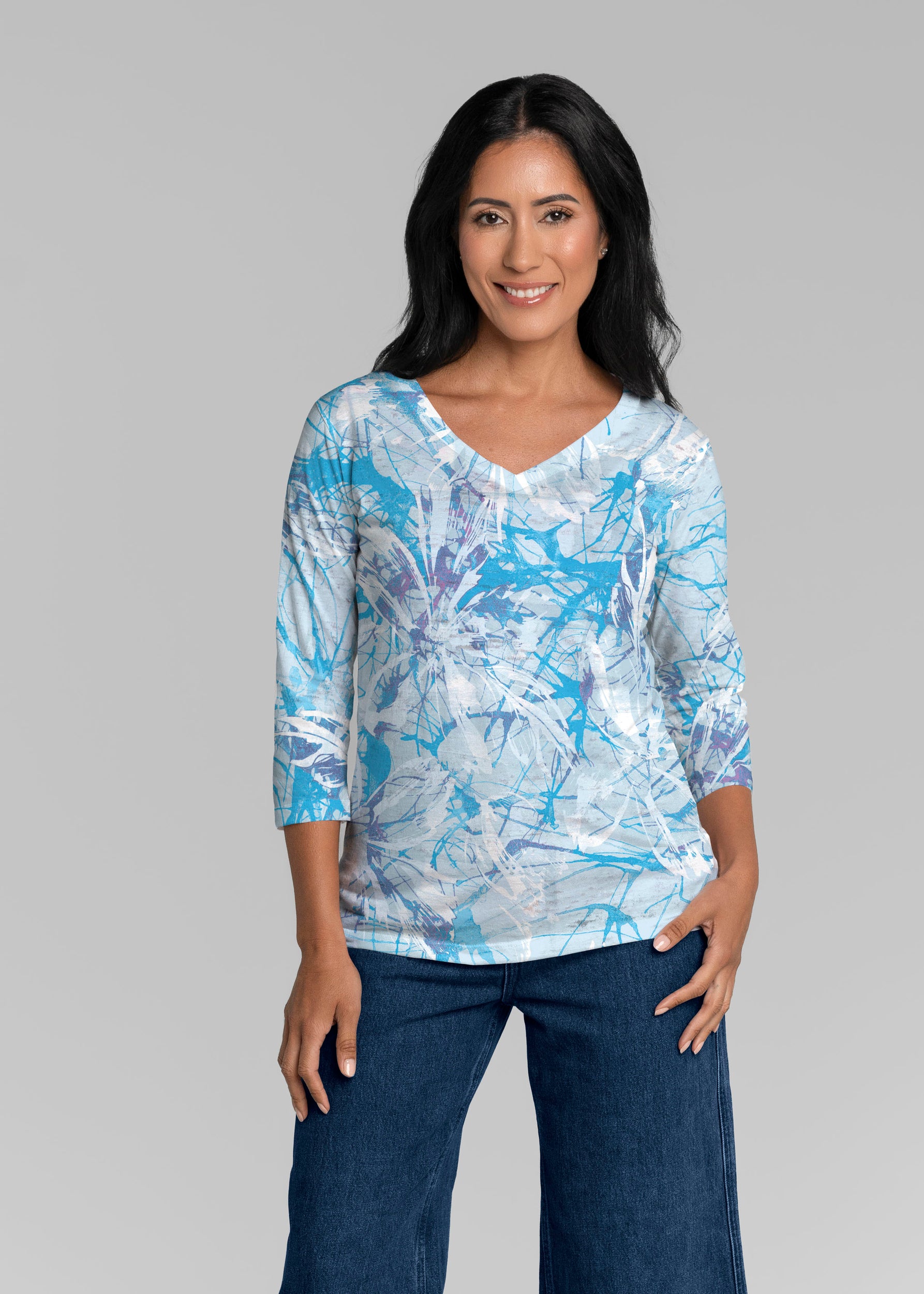 Our casual Signature 3/4 sleeve has a subtle v-neck and is perfectly proportioned and a new best-selling favorite. This relaxed fit is not only flattering but you get to pick that special print for any mood.