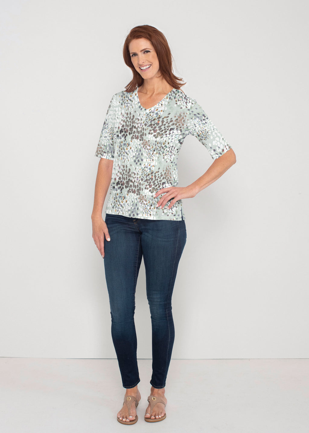 This Signature V-neck top combines the perfect for all day comfort with a relaxed fit and just the right sleeve length for stylish fun. Great on its own or the perfect layering piece.