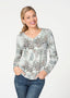Our French Terry top is comfort and style all in one! Our French Terry top that features long sleeves, a V-neck and a more fitted silhouette that looks stylish in any print.