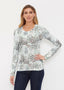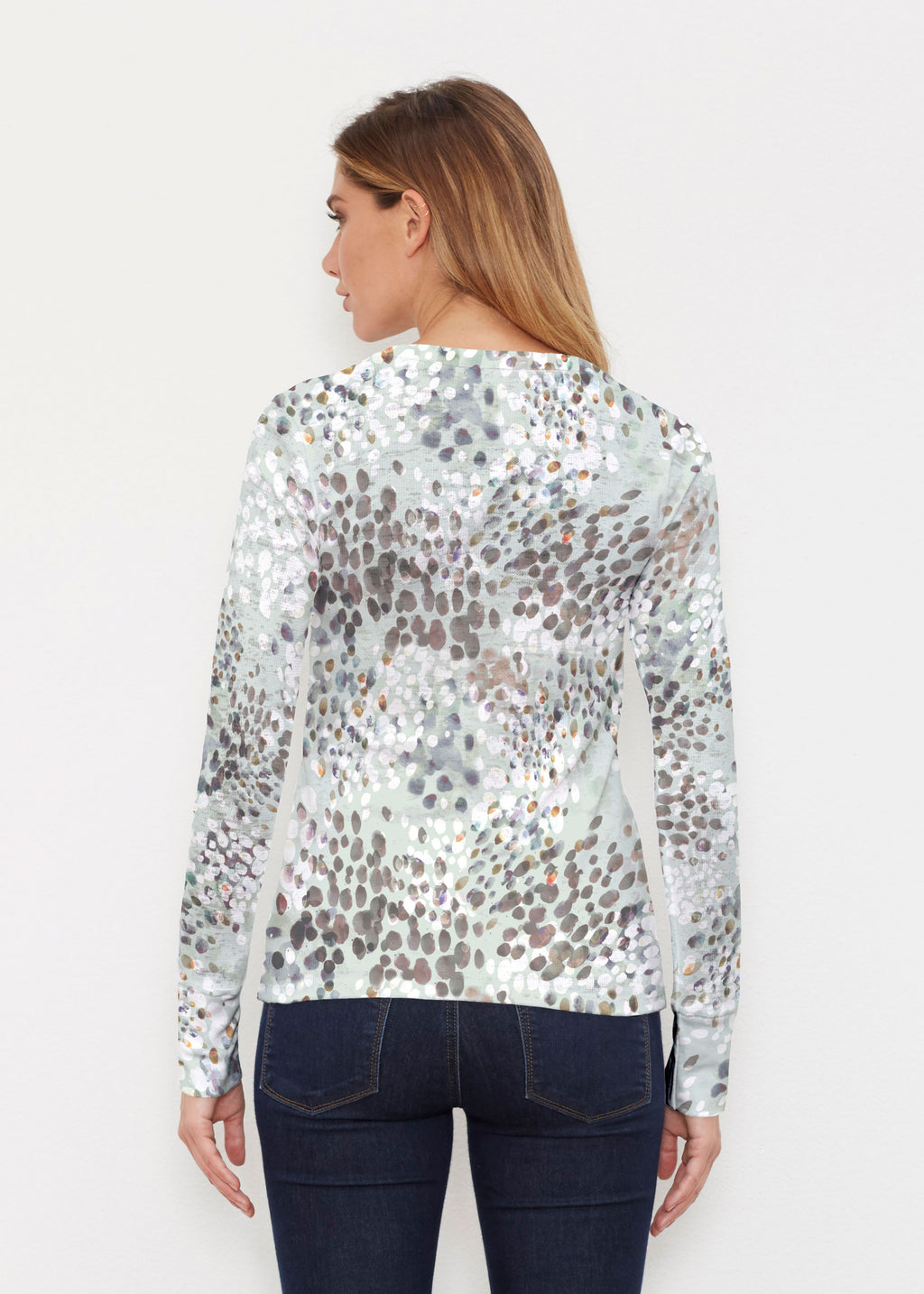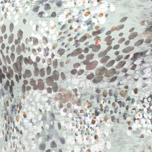 Delicate hand painted dots in shades of browns and whites on a soft mint canvas by Susan Werner.