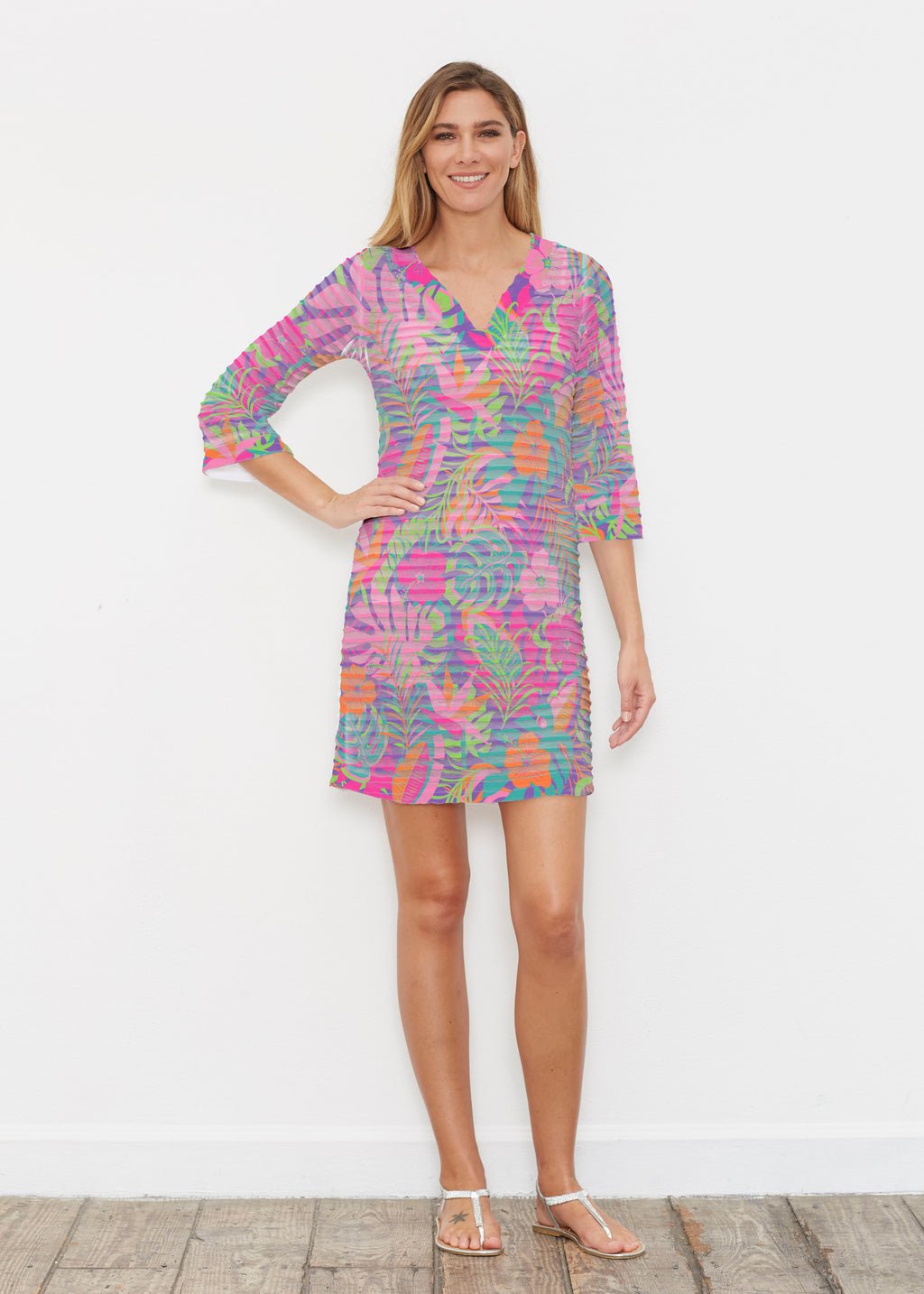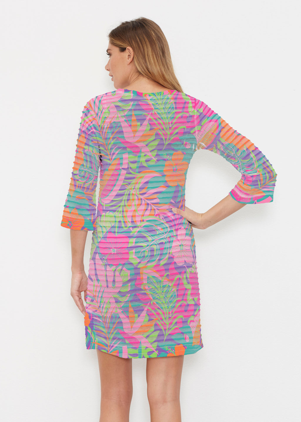 Rainbow Monstera (26040) ~ Banded 3/4 Sleeve Dress