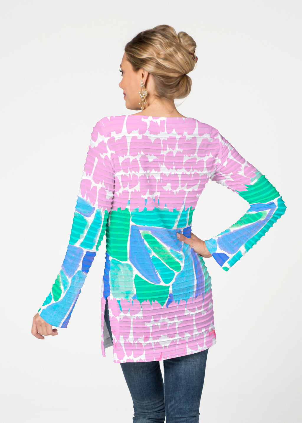 The Banded Boatneck Tunic has the soft pleated texture of our Banded fabric, making this a sophisticated, casual year round piece. A forgiving fit, side vents, with a relaxed full length sleeve combine for a flattering look. The hemline flows gently over the hip.