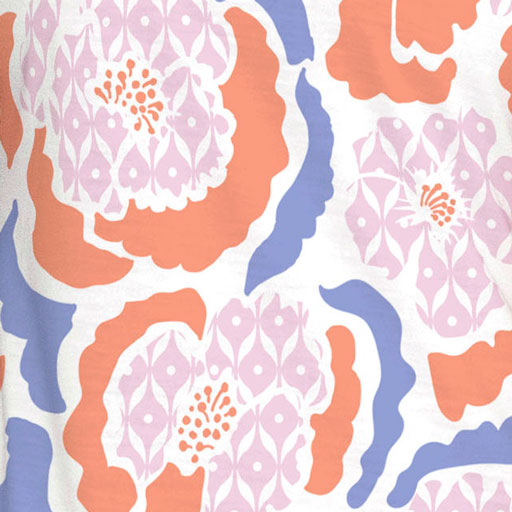 A pink and white geo design of peonies amongst festive colors of royal blue and orange.