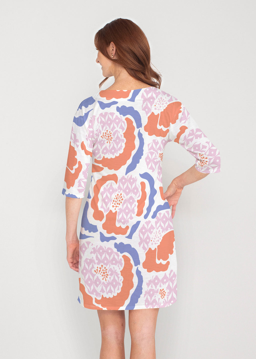 Be comfortable and fashionable all day in our light weight french terry fabric. This v-neck dress features loose 3/4 sleeves, drop shoulders and falls just at the knee.
