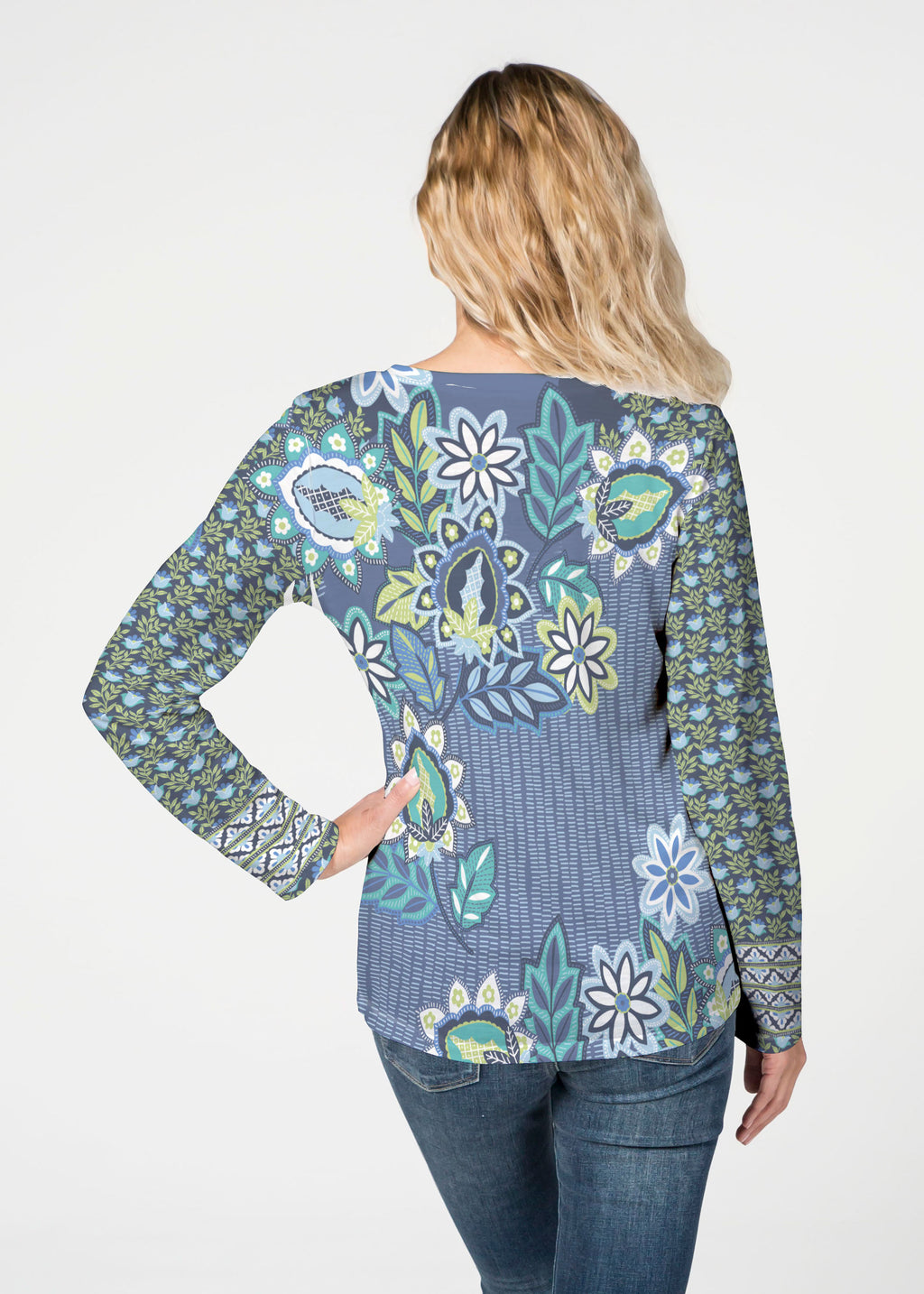 Our French Terry top is comfort and style all in one! Our French Terry top that features long sleeves, a V-neck and a more fitted silhouette that looks stylish in any print.